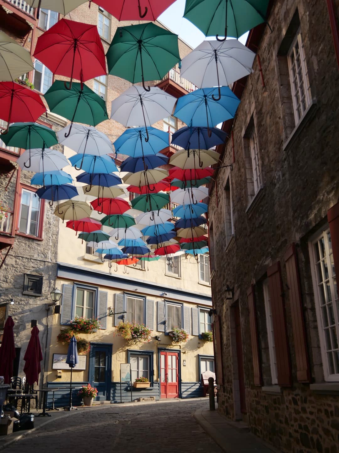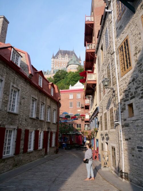 A deux pas de là, ne manquez pas non plus la Rue du Cul-de-Sac, surnommée l’Allée des Parapluies (qui s’y trouvent durant l’été seulement), d’où vous pourrez prendre l’une des plus jolies photos de Québec avec le Château Frontenac en arrière-plan !
