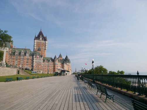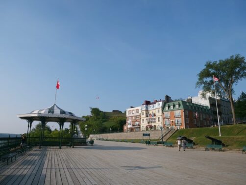 Il est possible d’aller y faire un tour, même si vous n’y séjournez pas, mais la vue la plus impressionnante est celle dont on peut profiter depuis l’extérieur de l’hôtel, sur la Terrasse Dufferin. Cette spacieuse terrasse offre une vue imprenable sur le Saint-Laurent. C’est aussi ici que vous devrez faire un choix, si vous souhaitez descendre jusqu’à la « Ville Basse », en empruntant soit des escaliers (ils sont moins difficiles que ce qu’ils en ont l’air !) ou le funiculaire…