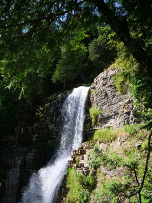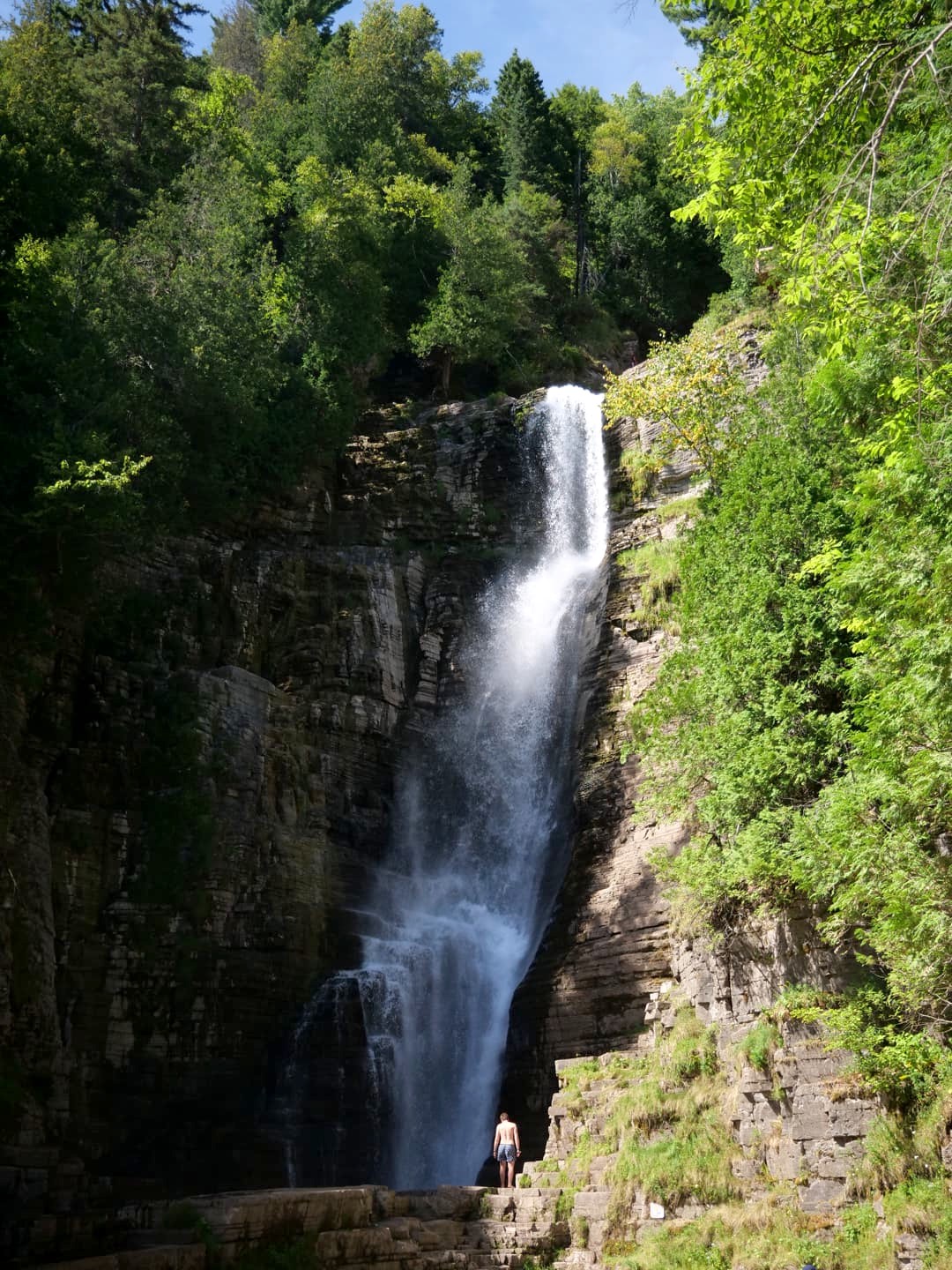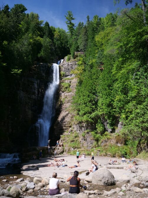 Le petit sentier en forêt vous emmène assez rapidement jusqu’au sommet des chutes. On ne se rend pas tout de suite compte à quel point celles-ci sont hautes ! L’ampleur de celles-ci se dévoile petit-à-petit, lorsque que l’on descend les escaliers qui les longe. En bas des chutes, durant l’été, vous découvrez une étonnante ambiance plage ! Les locaux viennent prendre le soleil, s’installent la journée, et les plus courageux osent même une petite plongée dans l’eau bien fraîche !