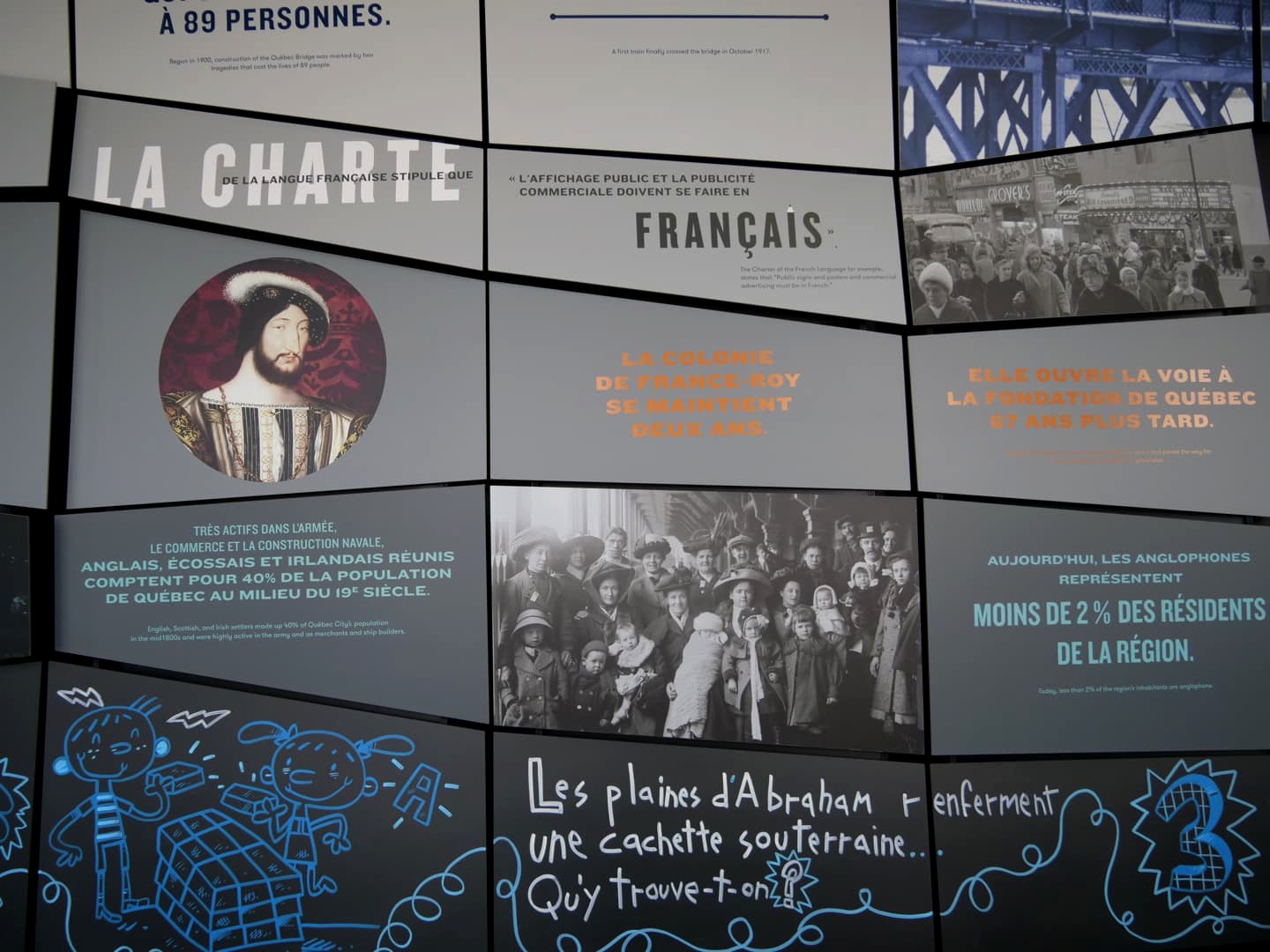Si vous avez envie d’en apprendre plus sur l’histoire du Québec ainsi que ses nations autochtones lors de votre balade dans le quartier du Petit-Champlain, ne manquez pas non plus le très intéressant Musée de la civilisation. Vous y trouverez plusieurs expositions permanentes et temporaires, sur différentes thématiques historiques et contemporaines. L’exposition permanente « C’est notre histoire » a notamment été créée en collaboration avec 11 nations autochtones, ce qui permet une immersion dans leurs cultures et visions du monde.