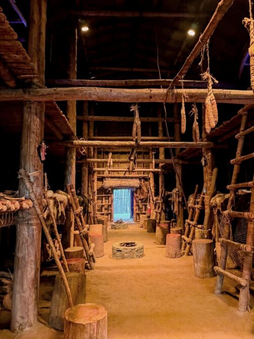 Nous avons visité avec un guide le Musée Huron-Wendat, qui fait partie de l’Hôtel-Musée Premières Nations. Les photos sont interdites dans la partie musée, mais nous avons également pu voir une reproduction d’une maison longue, l’habitat traditionnel avant le contact avec les européens. Aujourd’hui, vous pouvez même y dormir si vous avez envie de vivre une expérience unique ! Mais pour les amateurs de logement moins atypique, sachez que l’hôtel propose également des chambres toutes neuves, alliant à merveille tradition et modernité. C’est également une superbe adresse pour séjourner près de Québec si vous préférez un cadre un peu moins urbain, entouré par la nature.