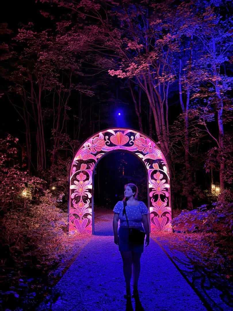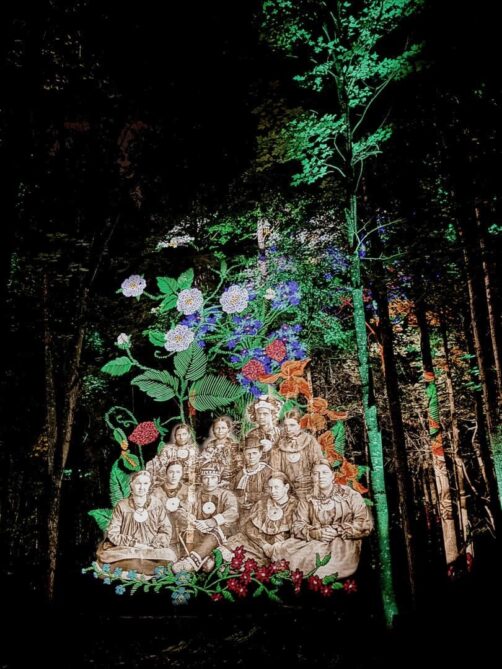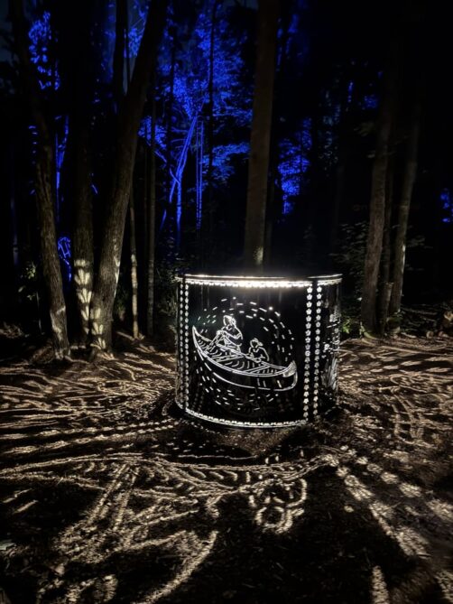 La réserve Wendake réserve décidemment bien des surprises puisque c’est aussi là que se trouve l’un des plus beaux parcours son et lumière que j’ai pu voir, le sublime Onhwa’ Lumina, qui y a lieu tous les soirs durant l’été. Ce parcours onirique, long de 1,2 km, vous permet de découvrir autrement la culture et les mythes de la Nation Wendat, grâce à une sublime expérience immersive en forêt. Je n’ai pas envie de trop vous en dire, puisque vous puissiez garder le même émerveillement que nous avons eu durant un peu plus d’une heure. Et la cerise sur le gâteau, c’est que c’est aussi ouvert à certaines dates durant l’hiver (et ça doit être tout aussi merveilleux, si pas encore plus !).