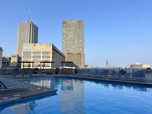 N’oublions pas également la piscine extérieure chauffée, assez rare en plein centre. L’hôtel a récemment été rénové et est vraiment d’un confort absolu. Et pour la petite anecdote, sachez que depuis cette année, cet hôtel appartient majoritairement à quatre Premières Nations.