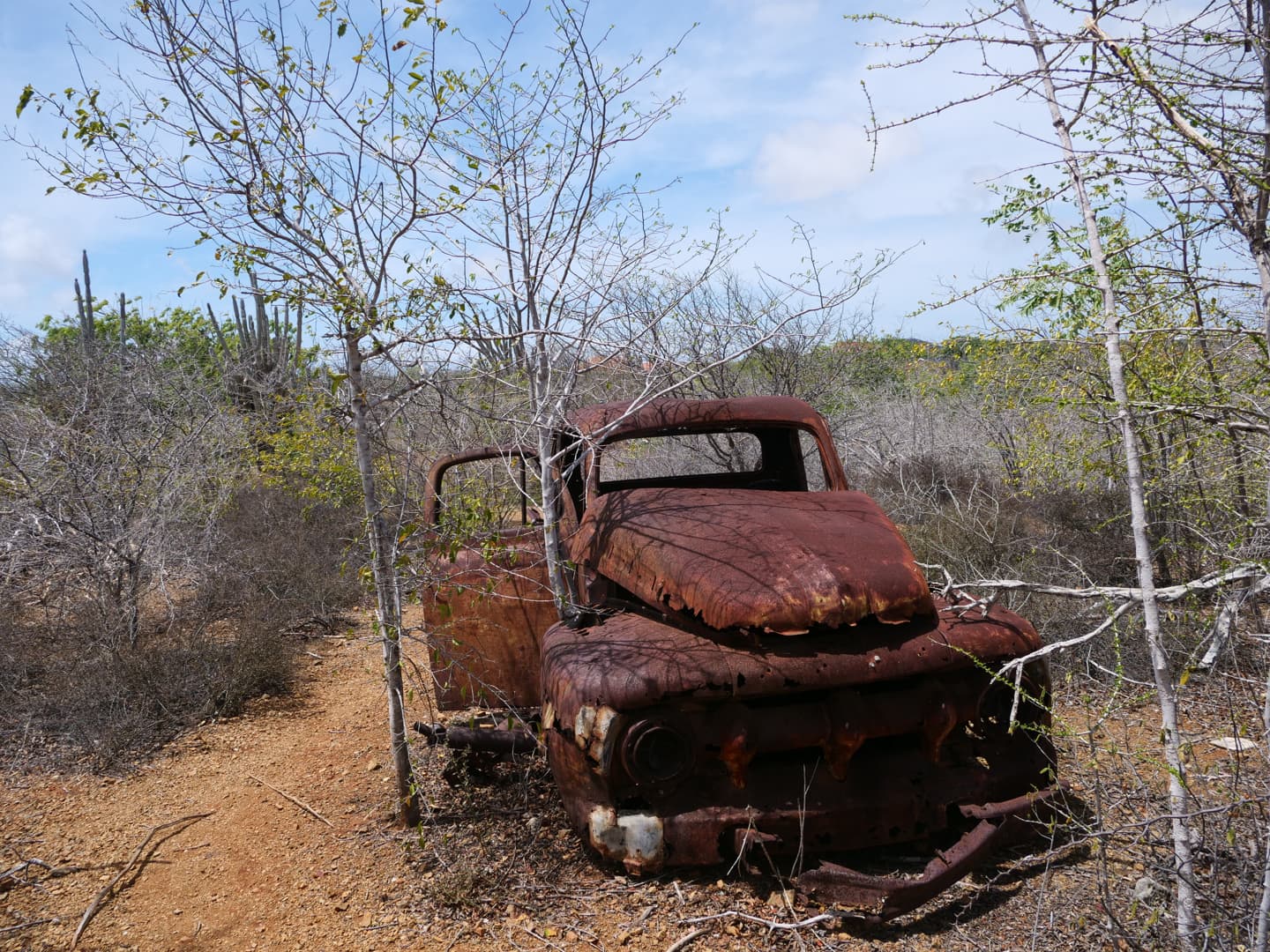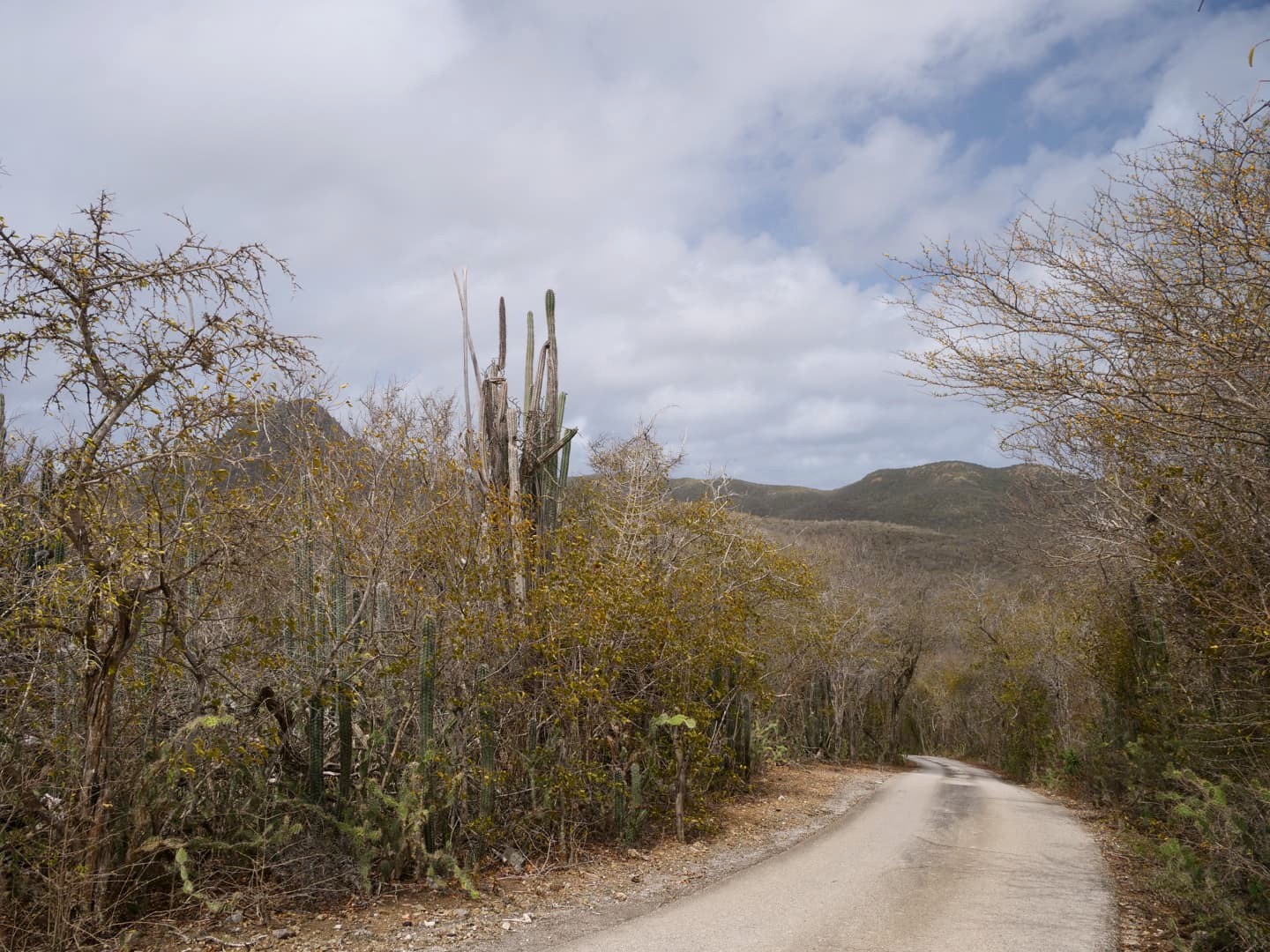 Côté pratique, la route panoramique de la zone sud est une route à sens unique. Il y a un raccourci pour accéder directement au point de départ de la randonnée du Christoffel, mais si vous voulez la parcourir dans son ensemble, je vous recommande de le faire rapidement avant de commencer la randonnée (sinon, vous devrez refaire tout le tour après, et vu la vitesse que l’on fait sur ces routes, c’est long !). Il n’y a pas énormément de choses à faire en plus de cette randonnée dans cette zone : il y a juste quelques points de vue où s’arrêter sur le bord de la route, et une petite balade à faire autour des ruines Zorgvlied (point 10 sur la carte du site). Il y avait apparemment une seconde zone accessible depuis une bifurcation de la route panoramique (pour aller plus dans les hauteurs), mais celle-ci semble actuellement fermée (le parc y proposait des tours en 4×4 mais ceux-ci n’avaient donc pas lieu non plus lors de mon voyage).