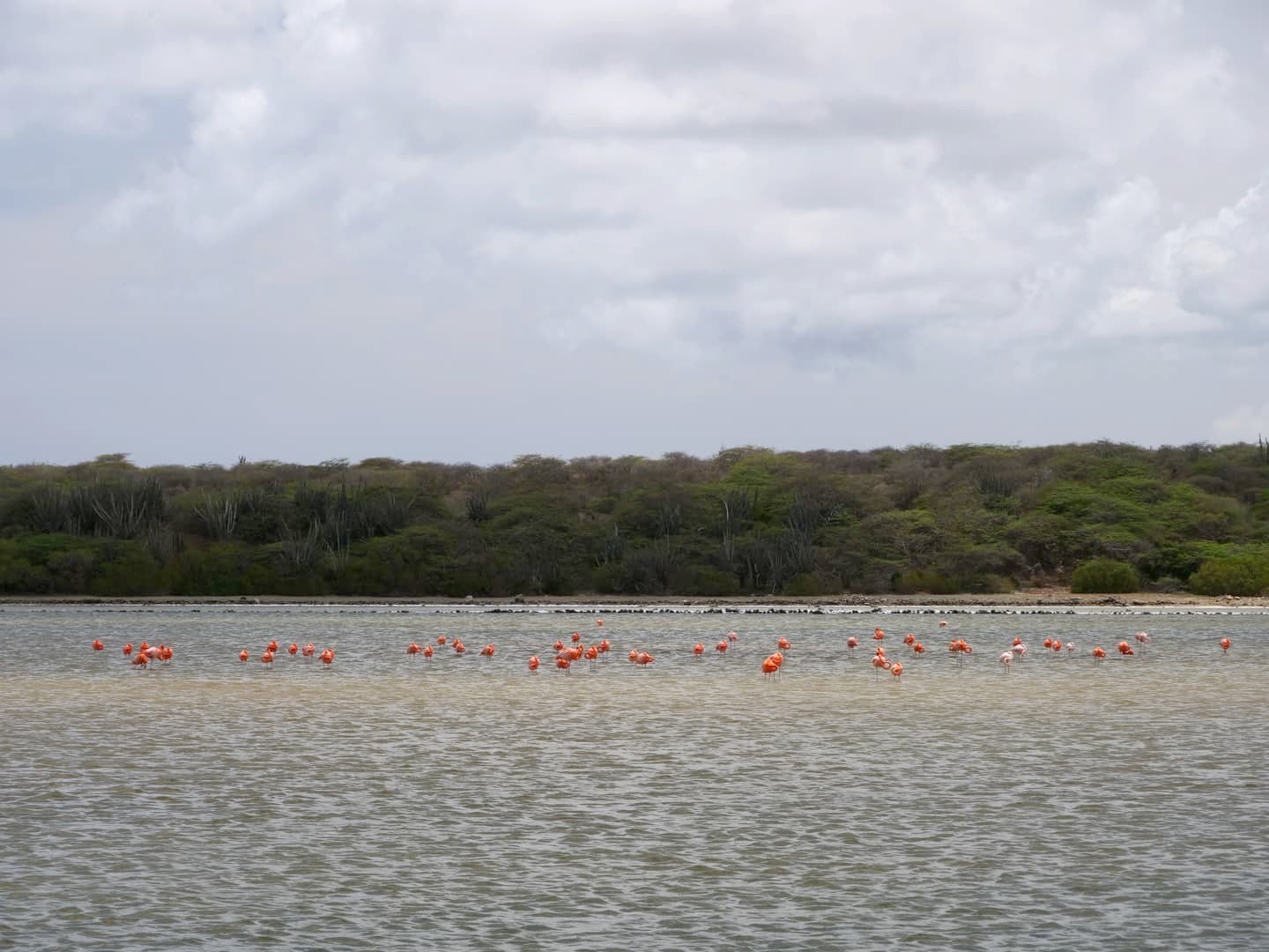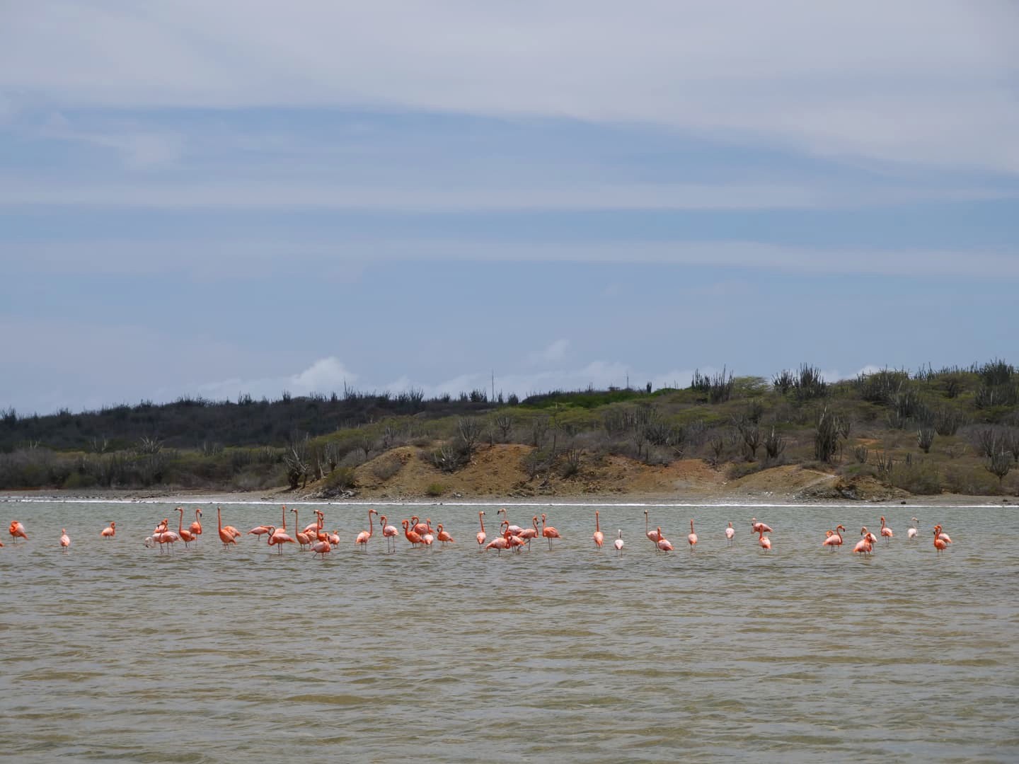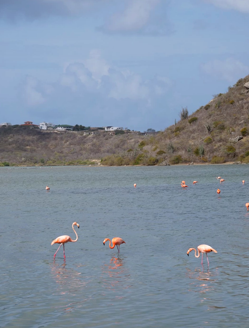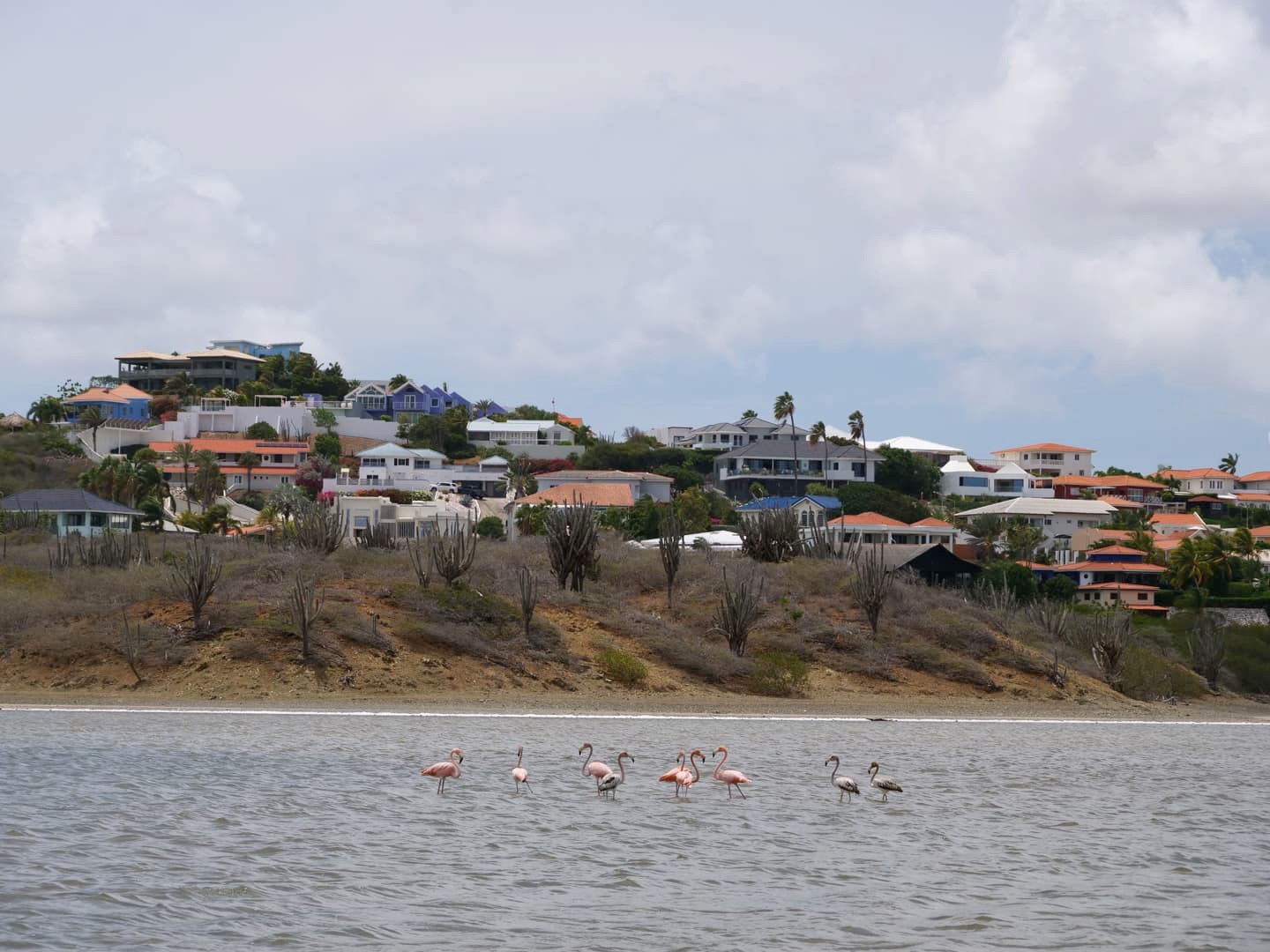 Si vous ne les voyez pas depuis le ponton surrélevé, rendez-vous alors à la Landhuis Jan Kok (une galerie d’artistes haute en couleurs), d’où vous pourrez avoir une vues panoramique et repérer facilement où ils se trouvent. J’ai ainsi pu les trouver sur la gauche du signe « Williwood », et j’ai pu m’en rapprocher pas mal en marchant quelques minutes le long des salines.