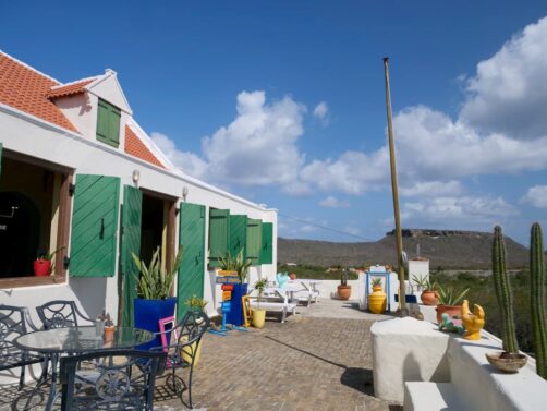 J’ai passé les trois dernières nuits de mon séjour à Curaçao à la Landhuis Klein Santa Martha, qui se trouve face à la baie de Santa Martha, à mi-chemin entre Jan Kok et Westpunt – une situation vraiment idéale pour explorer l’ouest de l’île ! « Landhuis » désigne les maisons de campagne de style colonial hollandais. C’est vraiment le même type de construction que l’on peut voir aux Pays-Bas, les couleurs en plus ! Il y a malheureusement beaucoup de landhuizen à l’abandon à Curaçao, mais certaines ont été transformées en restaurant, et celle-ci est l’une des rares à être devenue un petit hôtel ! Datant du 18ème siècle, c’était autrefois une grande plantation de sucre de canne et l’un des plus grands producteurs de sel sur l’île.