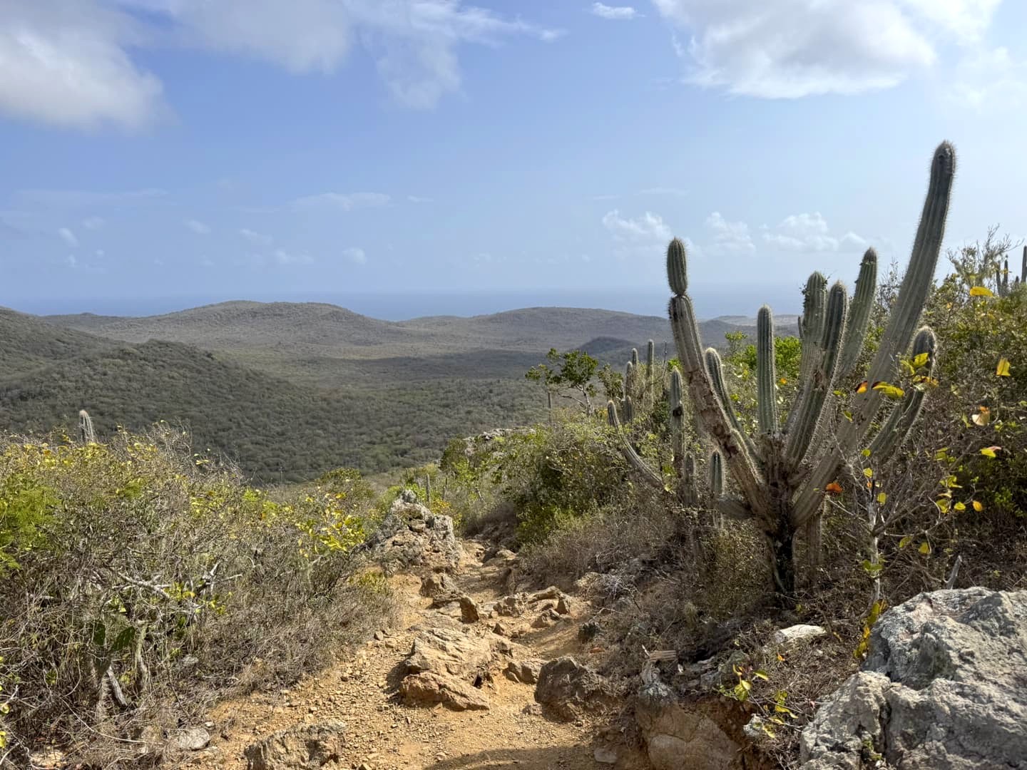 La zone sud est la plus fréquentée est la zone sud, car c’est de là que part la randonnée vers le sommet du Christoffel. Pour faire cette ascension, vous devrez vous lever aux aurores, car il est interdit de la faire après 10 heures du matin. Je vous recommande vraiment de vous rendre au parc à l’ouverture. La vraie difficulté de cette randonnée est la chaleur, et dès que le soleil commence à taper, ça devient vite insupportable. Le dénivelé est constant, et la difficulté du sentier augmente au fur et à mesure que l’on s’approche du sommet, avec plusieurs passage où il faut un peu escalader, et pas vraiment sécurisés. Cependant, cela reste faisable si vous n’avez pas trop le vertige, et j’ai vu des randonneurs de vraiment tout âge (c’est très fréquenté). Au total, j’ai mis 3 heures pour l’aller-retour avec une longue pause au sommet.