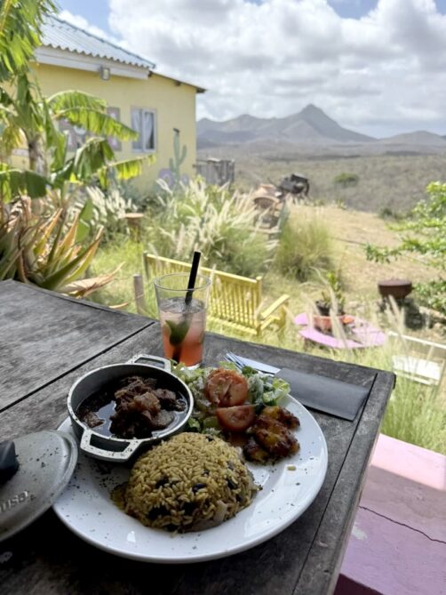 Shelterrock Paradise est un restaurant local qui offre une vue sur l’arrière du parc national de Christoffel. On y déguste une cuisine locale faite principalement de ragoûts (stobas). J’ai choisi le stoba à la papaye, qui était très bon. Le vendredi, ils font une soirée spéciale avec repas dans des noix de coco, à réserver à l’avance.
