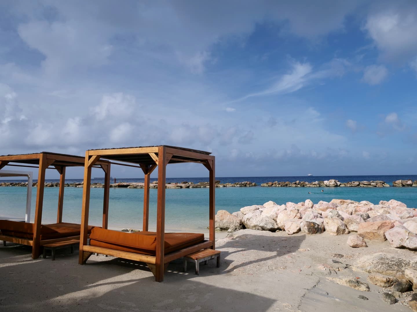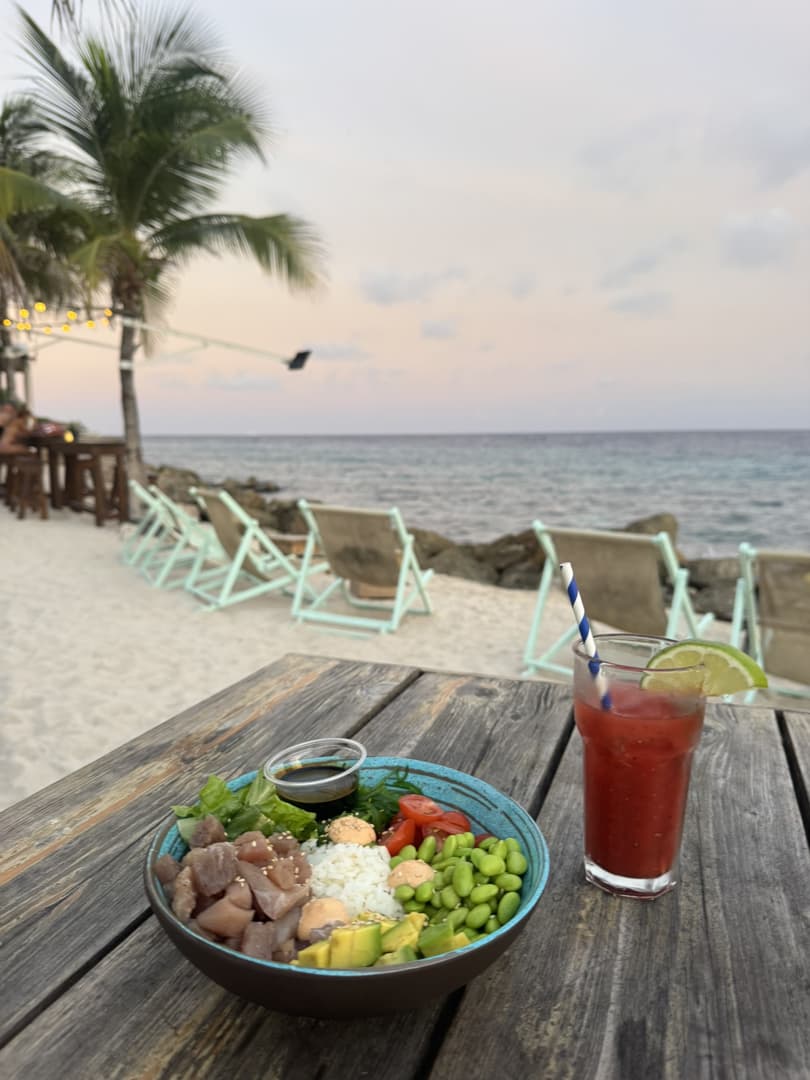 Karakter Beach n’est pas la plus belle plage de l’île, mais son attrait principal est que c’est l’une des seules à offrir gratuitement les transats si vous consommez. En plus de ça, leur restaurant est probablement l’un des meilleur pour manger les pieds dans le sable à Curaçao (un peu plus cher qu’ailleurs mais cuisine délicieuse et très recherchée).