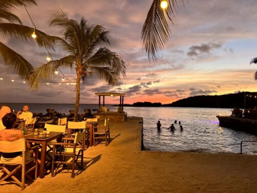 - Bar sur Tugboat Beach et restaurant sur Caracas Bay.