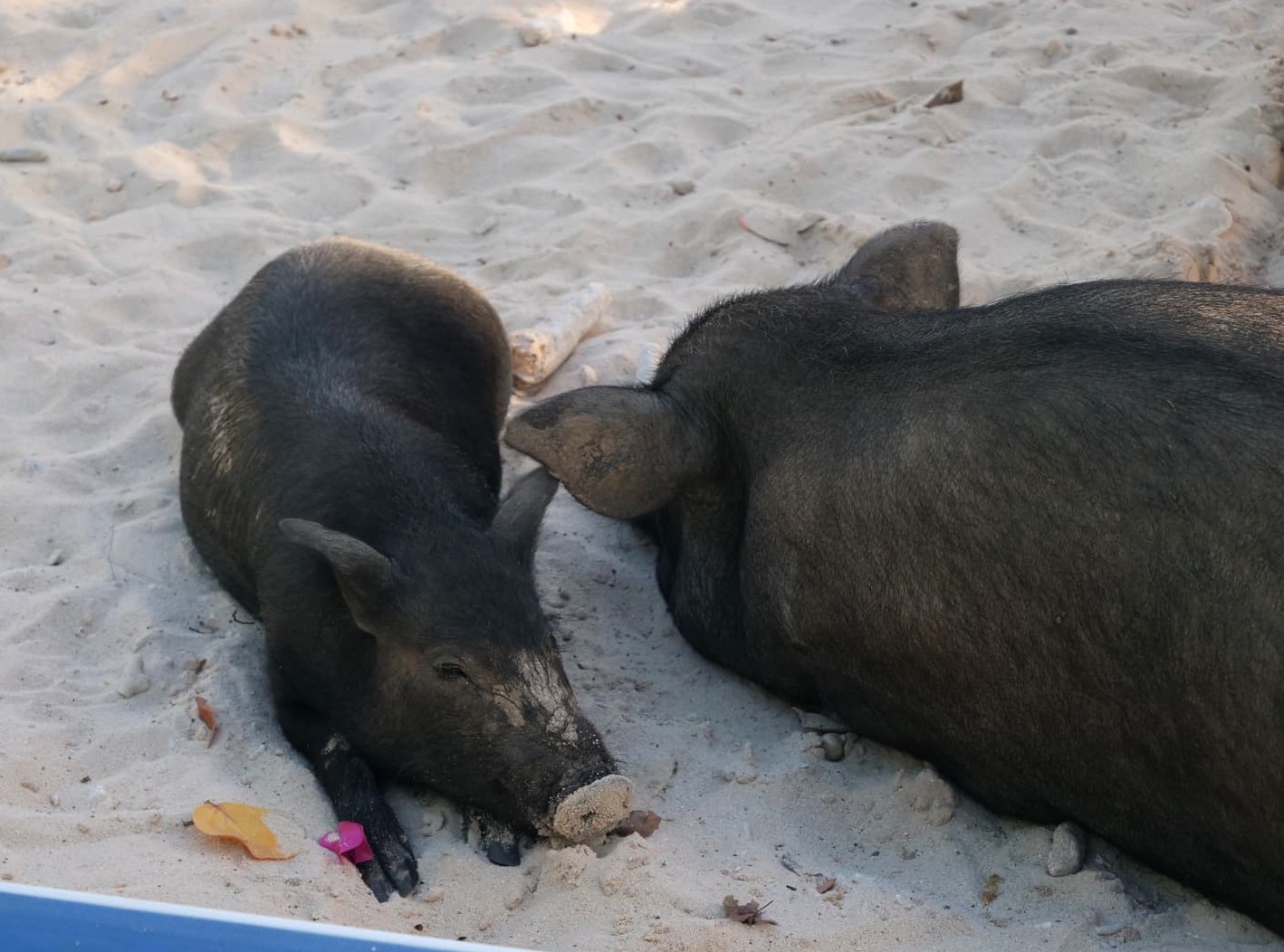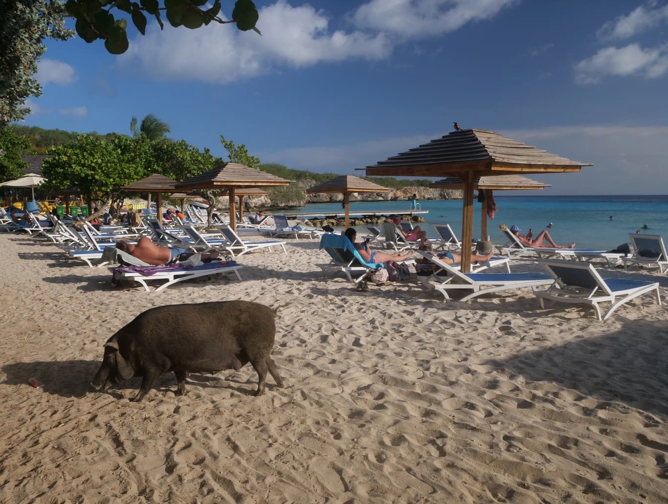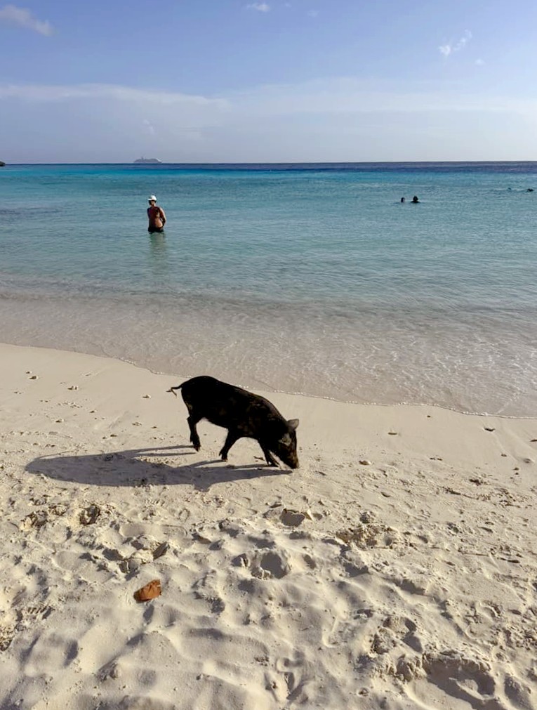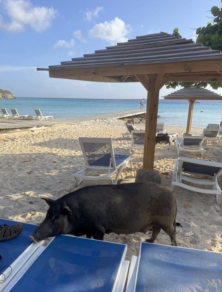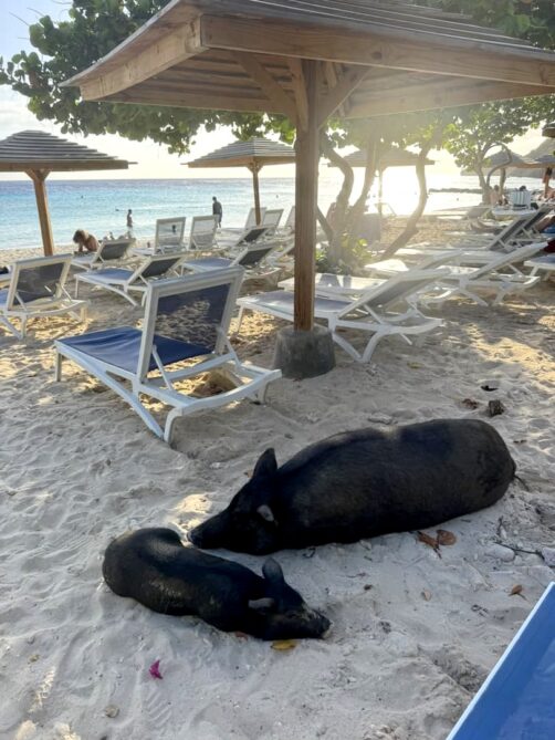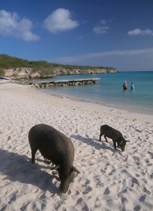 - Et de l’originalité, avec les cochons qui se baladent en liberté sur la plage ! Ils mettent l’ambiance même s’il vaut mieux éviter de laisser quelque chose traîner…