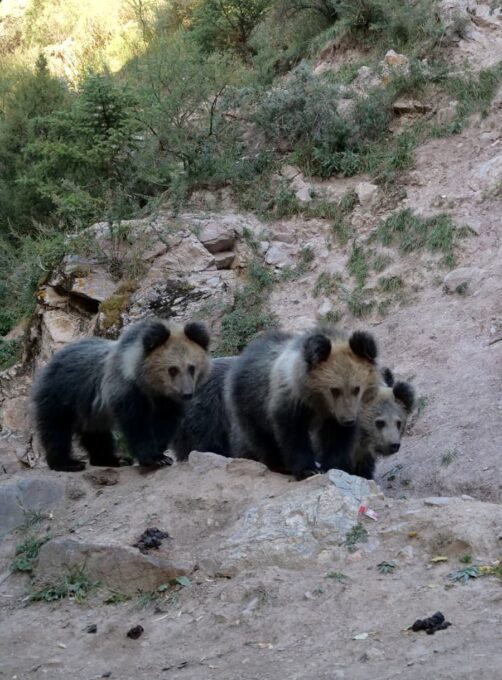 La route a mis mes nerfs à rude épreuve, mais le détour en valait définitivement la peine, puisque c’est l’endroit où vous aurez le plus de chance d’observer des ours bruns tibétains sauvages ! Les moines ont pris l’habitude de leur laisser leurs restes, lorsqu’ils en ont. Ils ont mis des barrières pour que les ours puissent descendre tranquillement de la montagne le soir, vérifier s’il y en a. On a notamment vu descendre une maman ours avec tous ses petits, un très beau moment.