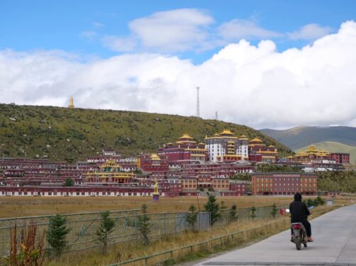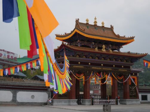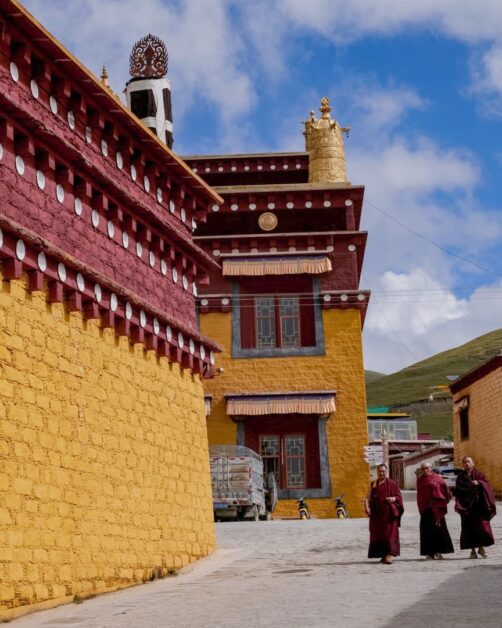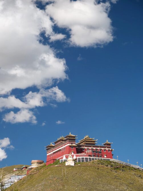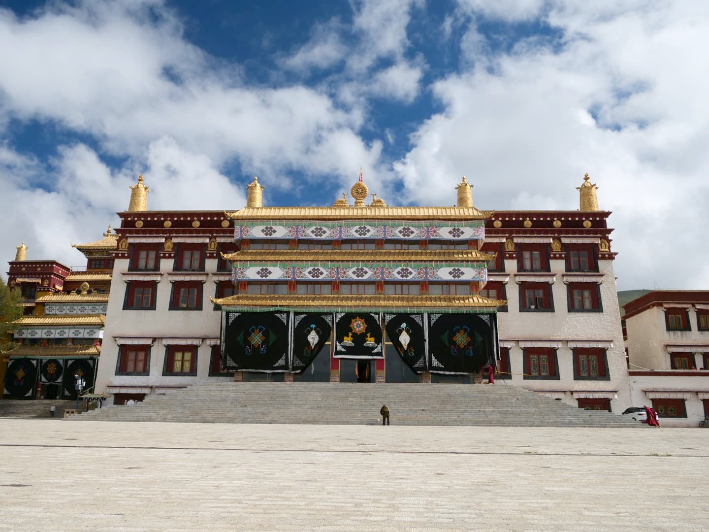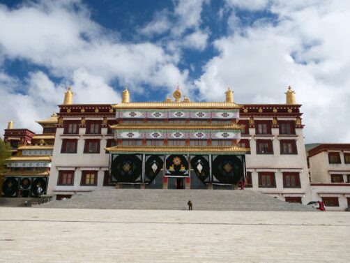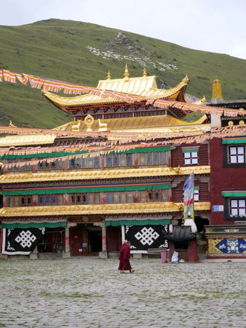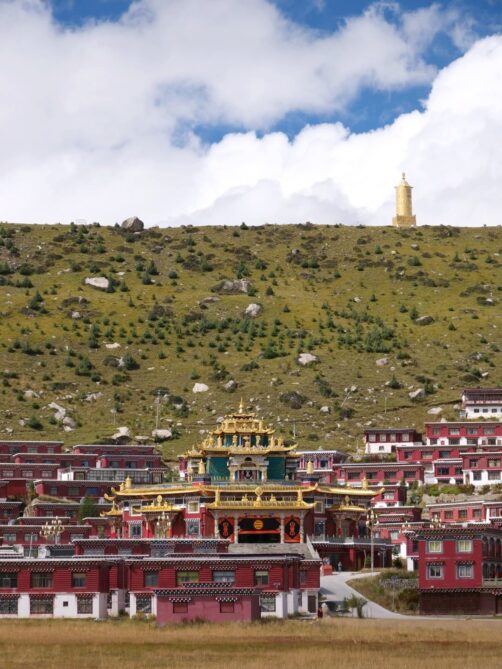 Notre tournée des monastères tibétains continue avec la visite du Monastère de Zhuqing (Dzogchen, 4000 mètres d’altitude), qui est le plus important monastère de l’école Nyingma du bouddhisme tibétain. Le complexe du monastère, situé au pied du Mont Que’er, est très étendu et on peut vivre ici une autre expérience unique : celle de manger un repas végétarien à la cantine du monastère ! Ne vous attendez as au niveau de finesse des temples bouddhistes japonais ou coréens, mais cela reste une expérience à ne pas manquer.