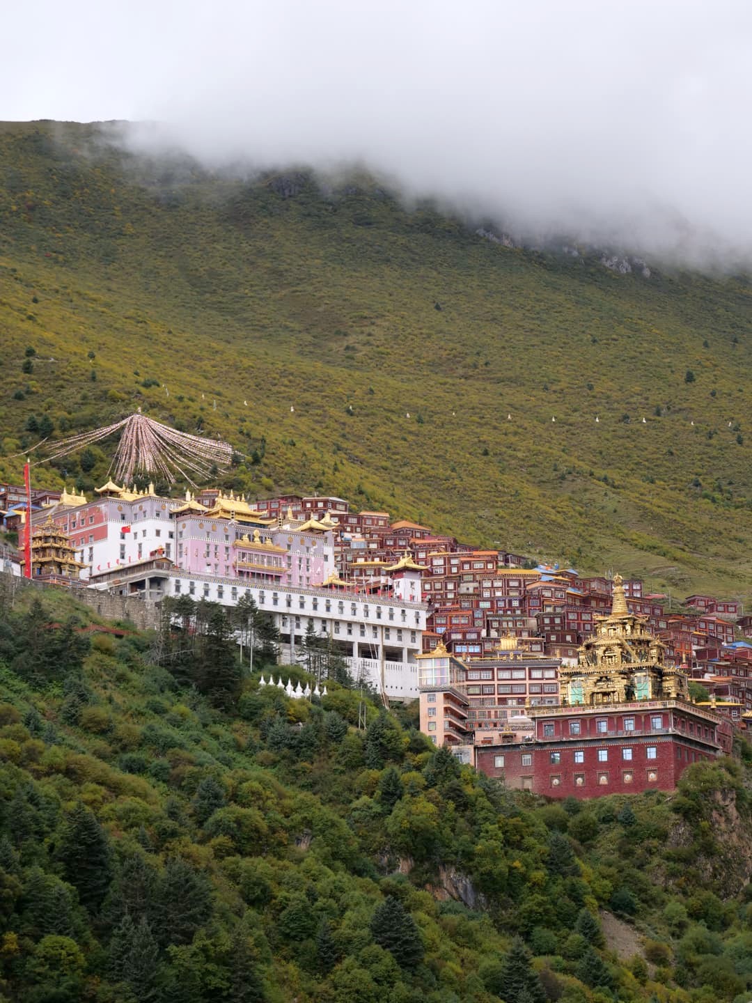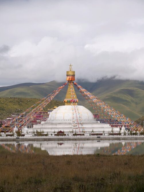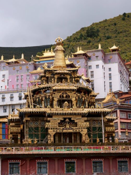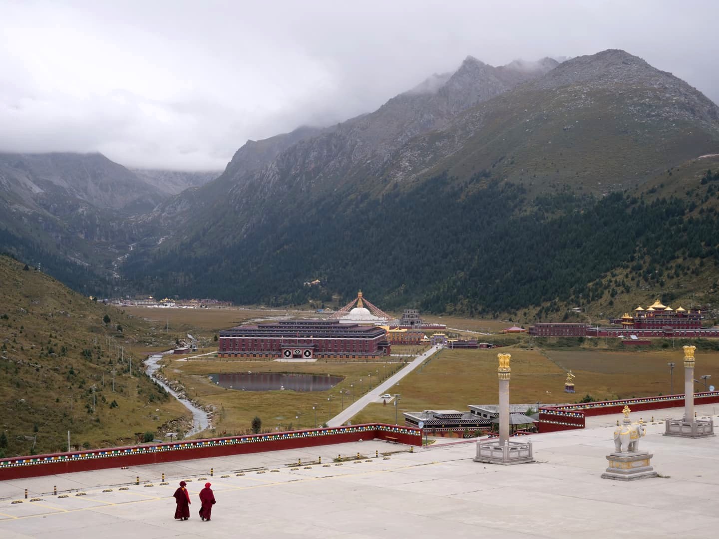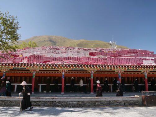 Notre tournée des monastères tibétains continue avec la visite du Monastère de Zhuqing (Dzogchen, 4000 mètres d’altitude), qui est le plus important monastère de l’école Nyingma du bouddhisme tibétain. Le complexe du monastère, situé au pied du Mont Que’er, est très étendu et on peut vivre ici une autre expérience unique : celle de manger un repas végétarien à la cantine du monastère ! Ne vous attendez as au niveau de finesse des temples bouddhistes japonais ou coréens, mais cela reste une expérience à ne pas manquer.