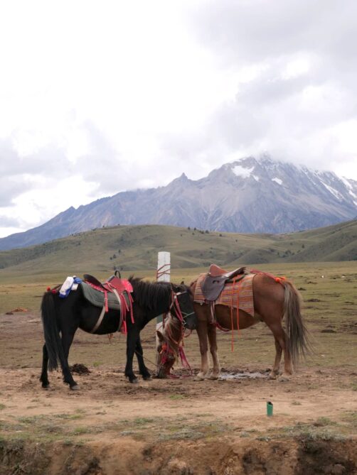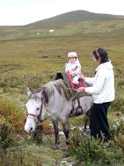 Notre seconde journée à Tagong fut bien différente, puisque nous avons quitté la ville pour prendre encore un peu plus de hauteur et aller passer la journée avec les nomades des plaines (Tagong Grasslands). C’était l’une des expériences que j’attendais avec le plus d’impatience durant ce voyage, et je n’ai pas été déçue ! Nous avons vraiment vécu leur vie quotidienne, avec la traite des yak, la préparation du repas (tsampa, le plat traditionnel des nomades) et nous avons même pu faire un peu de cheval !