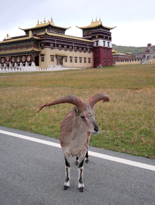 Nous avons aussi fait un détour par le Monastère de Muya, l’un de mes préférés de ce voyage, où sont recueillis des animaux sauvages sauvés par les moines. Muya est aussi l’un des plus anciens temples tibétains, et son cadre avec les montagnes enneigées en arrière plan est vraiment incroyable.