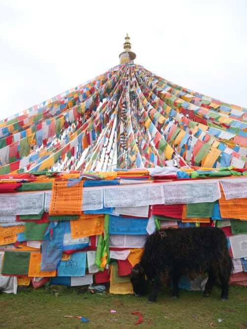 Contrairement à ce qu’on pourrait le croire, les bouddhistes tibétains ne sont en général pas entièrement végétariens, car c’est trop compliqué à cette altitude. Il peut donc être assez difficile pour les végétariens de trouver leur bonheur dans cette région. La suprémacie du yak dans les assiettes reflète par contre l’idée qu’il vaut mieux manger de gros animaux car une seule vie peut ainsi nourrir une famille pour une année entière.