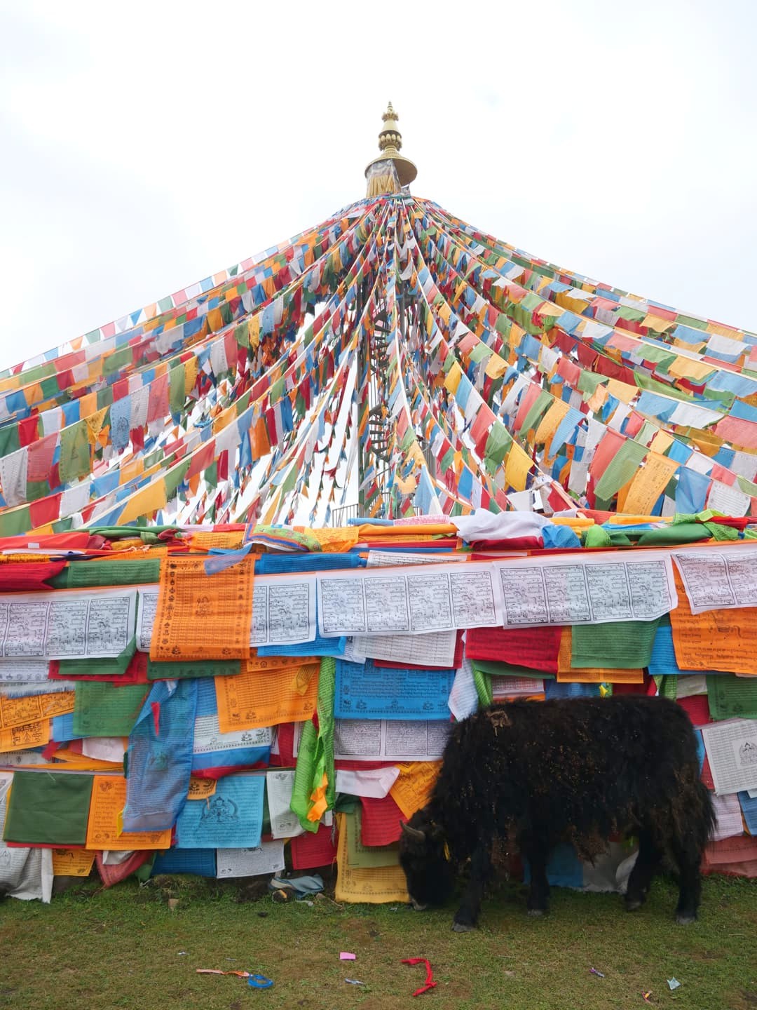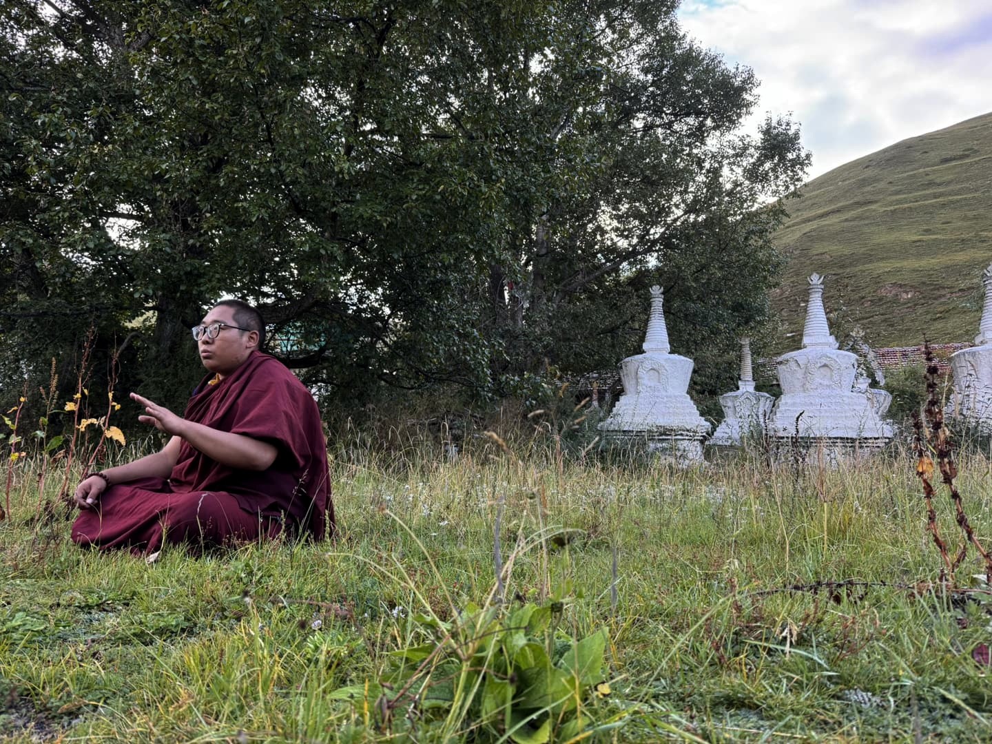 Juste à côté, nous avons aussi rapidement visité le Monastère de Ani Gompa, réservé quant à lui aux femmes, avant de revenir au Monastère de Tagong pour la surprise de la journée : une initiation à la méditation dans le jardin de stupas du temple, guidés par un moine. Un moment vraiment hors du temps !