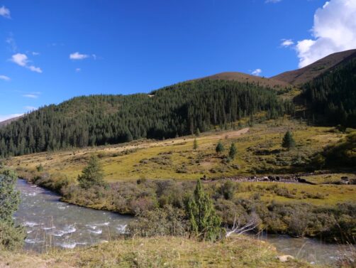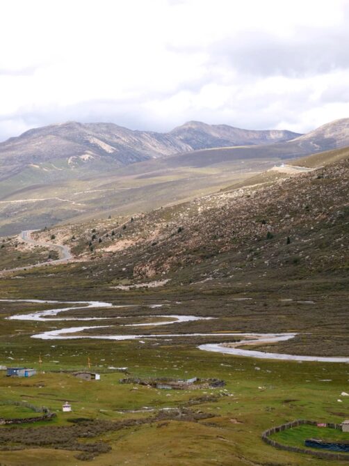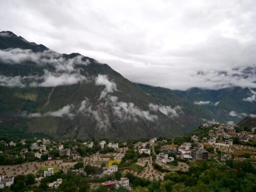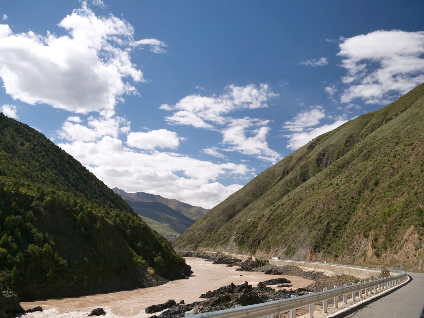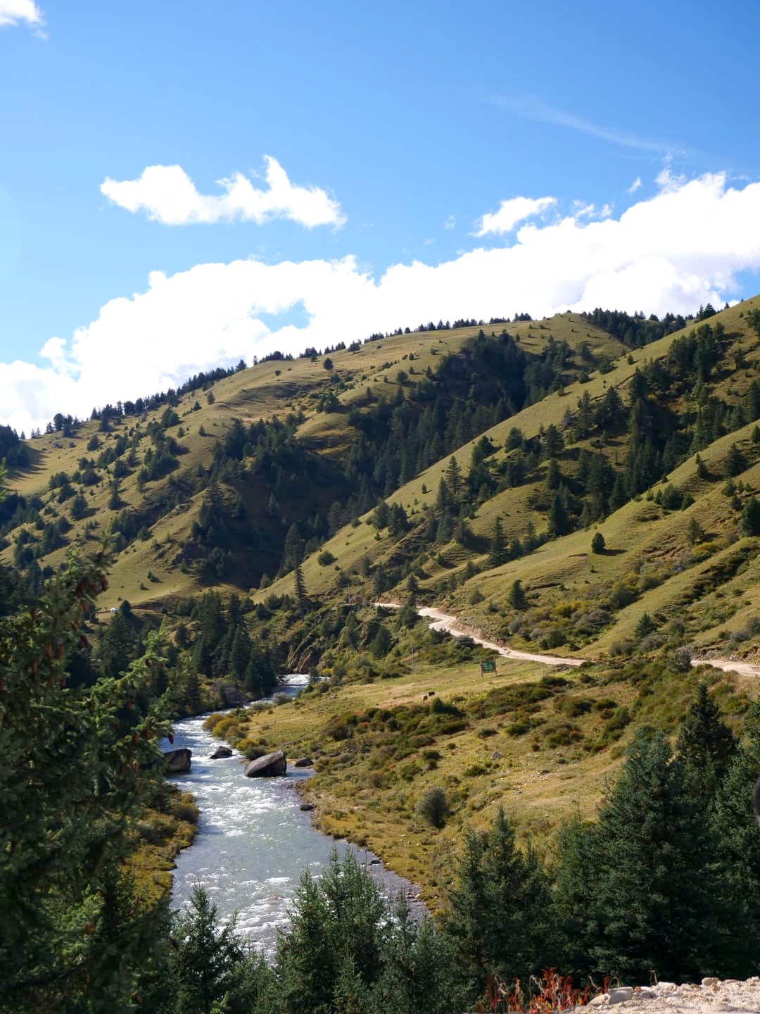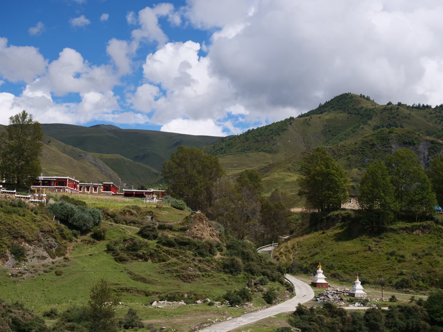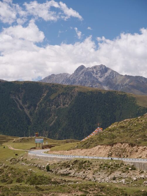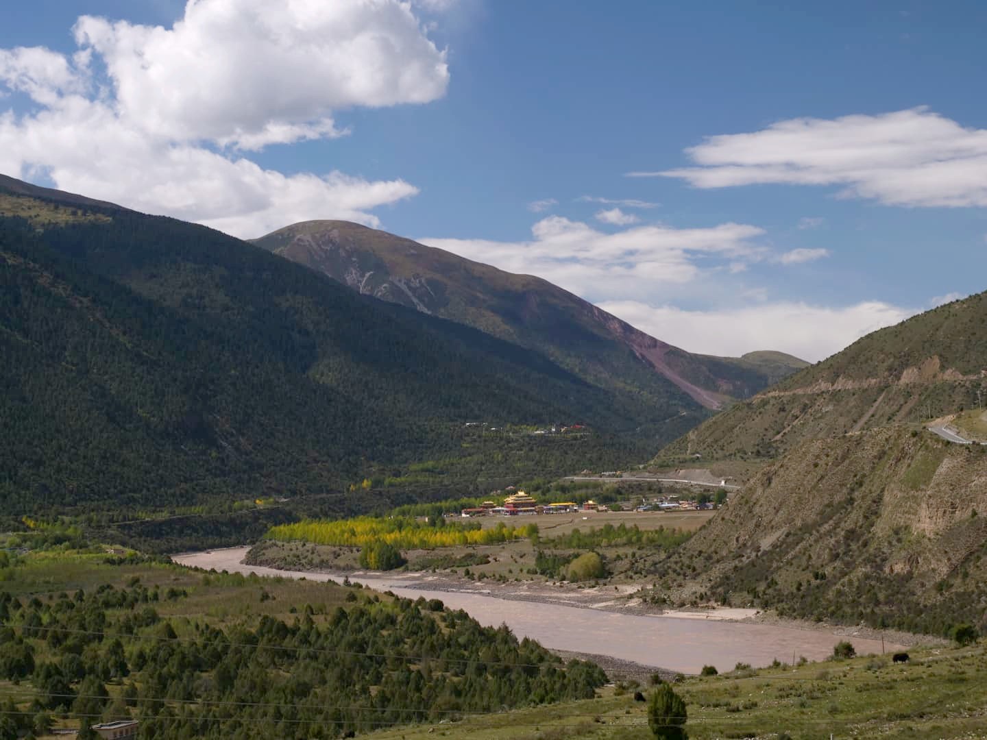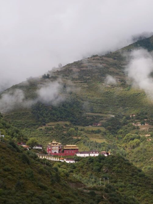 La montée en altitude continue à se faire petit à petit, et nous passons de 2100 mètres à 3730 mètres, à Tagong où nous resterons deux jours. La route vers Tagong est assez longue, mais aussi très scénique. Nous traversons d’abord de belles gorges verdoyantes, avant de monter en altitude et de voir les paysages changer au fur et à mesure.