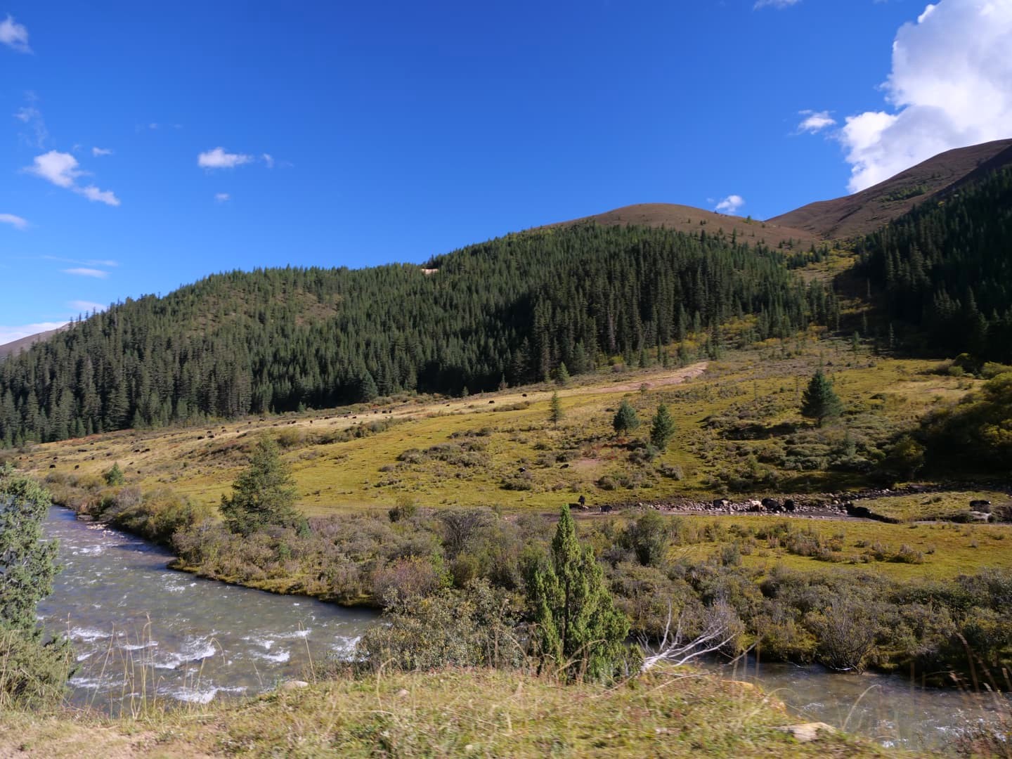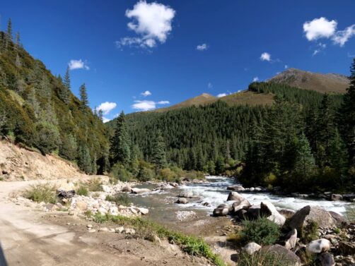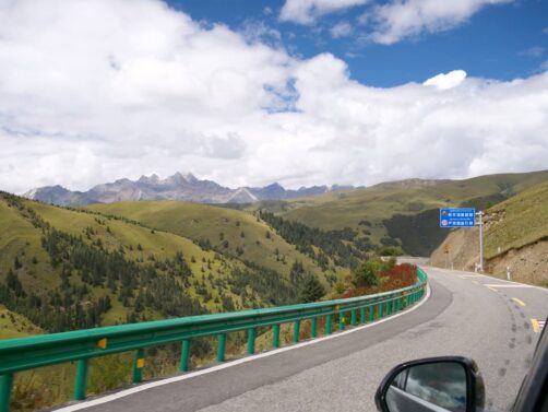 Ensuite, nous avons pris la direction de la région du Mont Genyen (une montagne sacrée pour les tibétains), en empruntant la première (mais pas la dernière !) piste non goudronnée de ce voyage. Nous entrons dans une région aux paysages alpins étonnants mais sublimes.