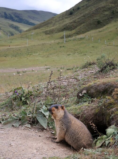 Nous faisons une pause pour manger au village de Xiazetong, perdu au milieu des montagnes. Celui-ci est connu pour ses sources chaudes, mais celles-ci étaient malheureusement inaccessibles lors de notre voyage à cause de travaux. A proximité du village, avec un peu de chance, vous pourrez aussi voir des marmottes très peu farouches !
