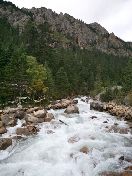 Un peu plus loin, nous nous arrêtons ensuite pour une balade au lac alpin surnommé « The Eye of Genyen », un endroit très scénique, où les chinois aiment beaucoup aller faire voler leur drone (le lac est encore plus scénique vu d’en haut, il faut le reconnaître).