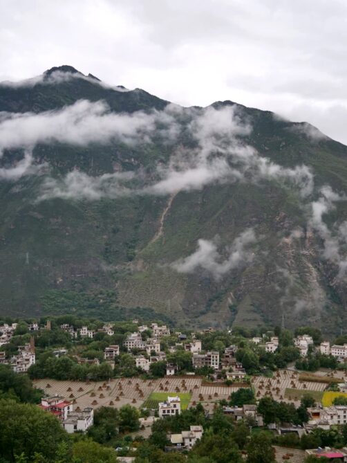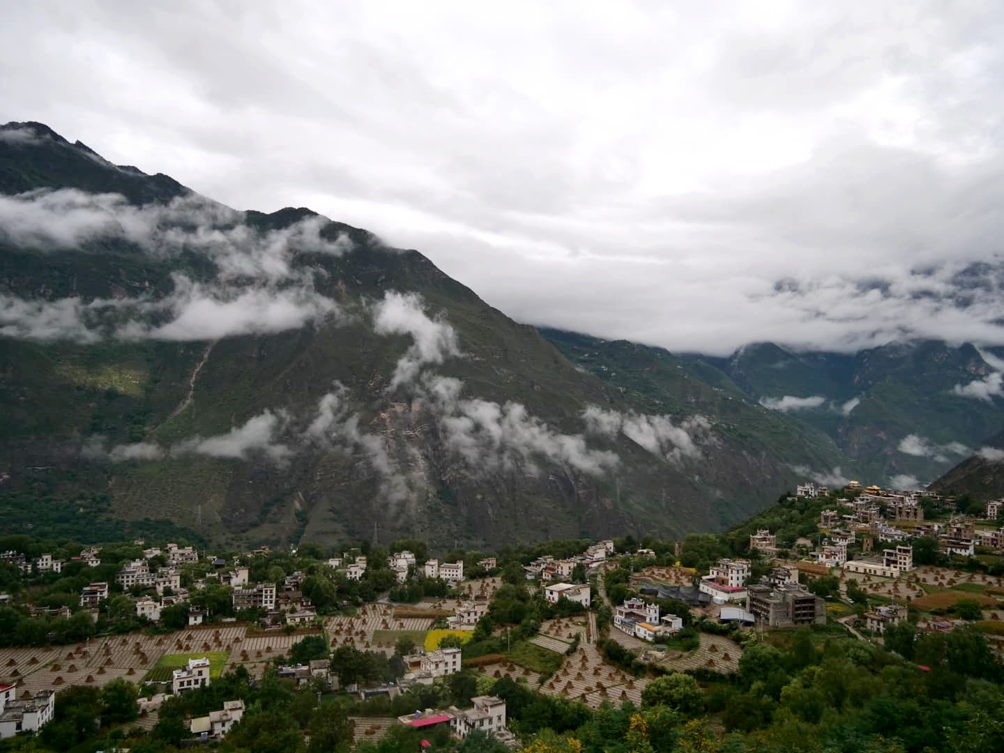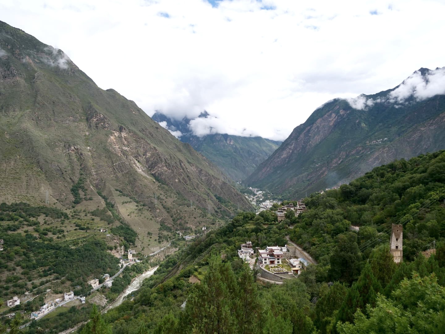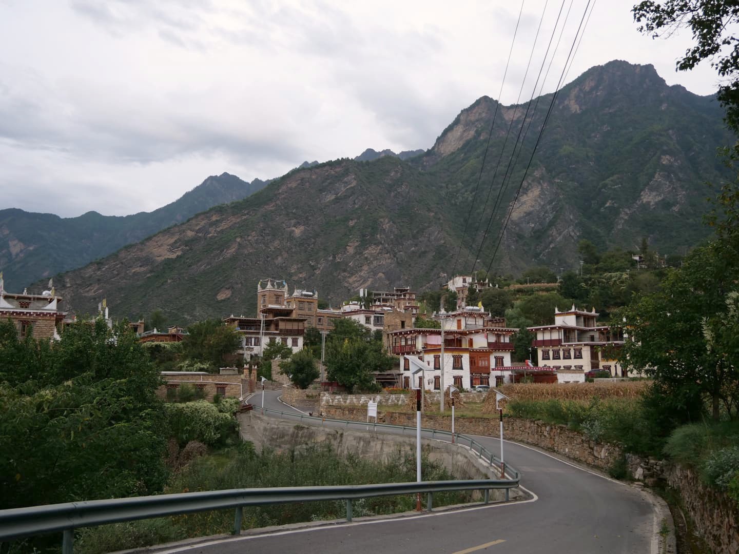 L’après-midi fut passée sur la route, avec un arrêt pour voir le Mont Siguniang (qui était malheureusement un peu caché). Nous sommes arrivés en fin de journée au village tibétain de Zhonglu (2100 mètres d’altitude), connu pour son architecture traditionnelle et… la beauté de ses femmes !