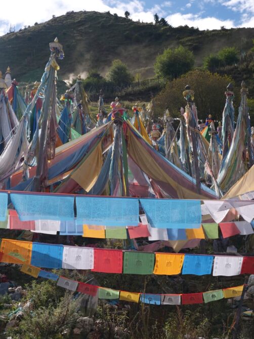 Cet itinéraire se concentre sur les régions tibétaines de Kham et Amdo, à l’intérieur des provinces chinoises du Sichuan et du Qinghai. Ce trajet permet d’aller progressivement vers des altitudes de plus en plus élevées, mais aussi vers des coins de plus en plus sauvages et méconnus de Chine. Ce voyage, c’était aussi prendre l’habitude d’observer, d’écouter tous les jours les prières dans les monastères, s’émerveiller face aux paysages qui changent constamment, en ouvrant l’oeil pour essayer d’observer un cerf, un singe ou même un ours. Je dois aussi mentionner qu’en dehors des Emirats, je ne me suis jamais autant sentie en sécurité durant en voyage. Quelles qu’en soient les raisons, cela a rendu ce voyage encore plus agréable : à aucun moment on ne vous pousse à acheter quoi que ce soit, et ce sont des sourires qui vous accueille partout, sans aucune arrière pensée.