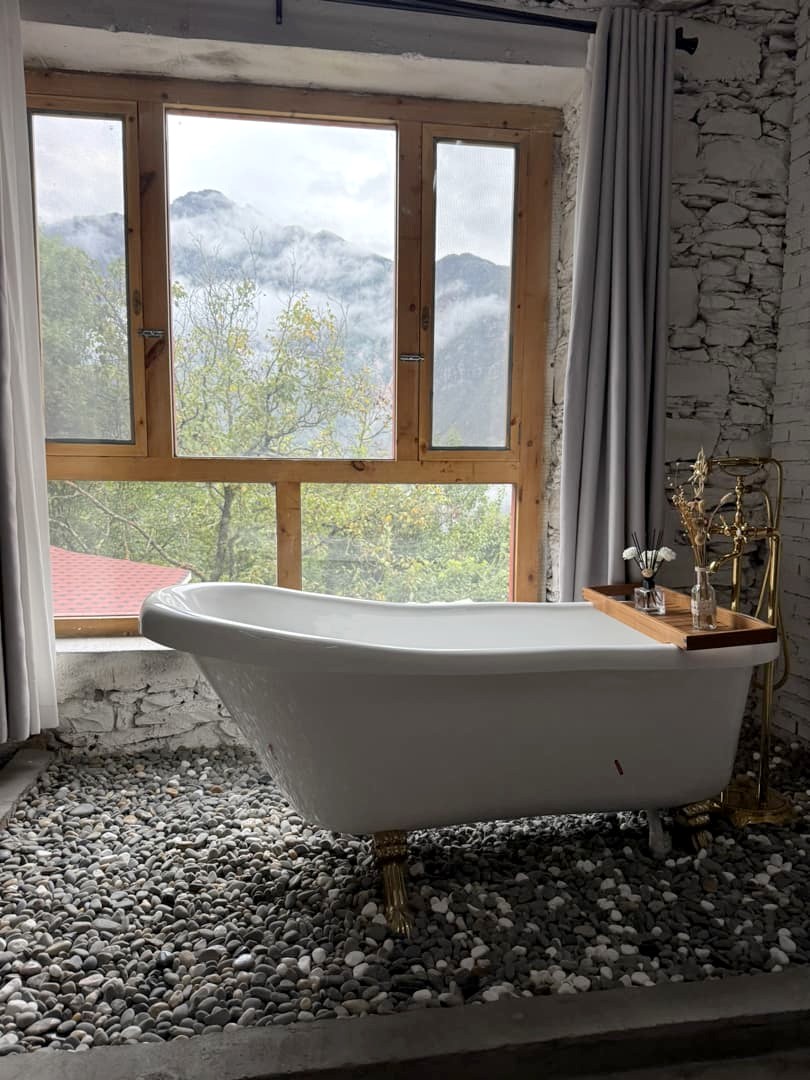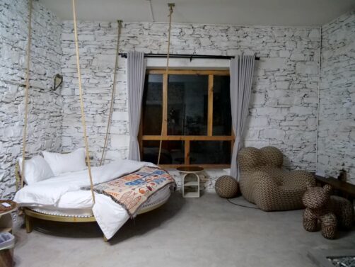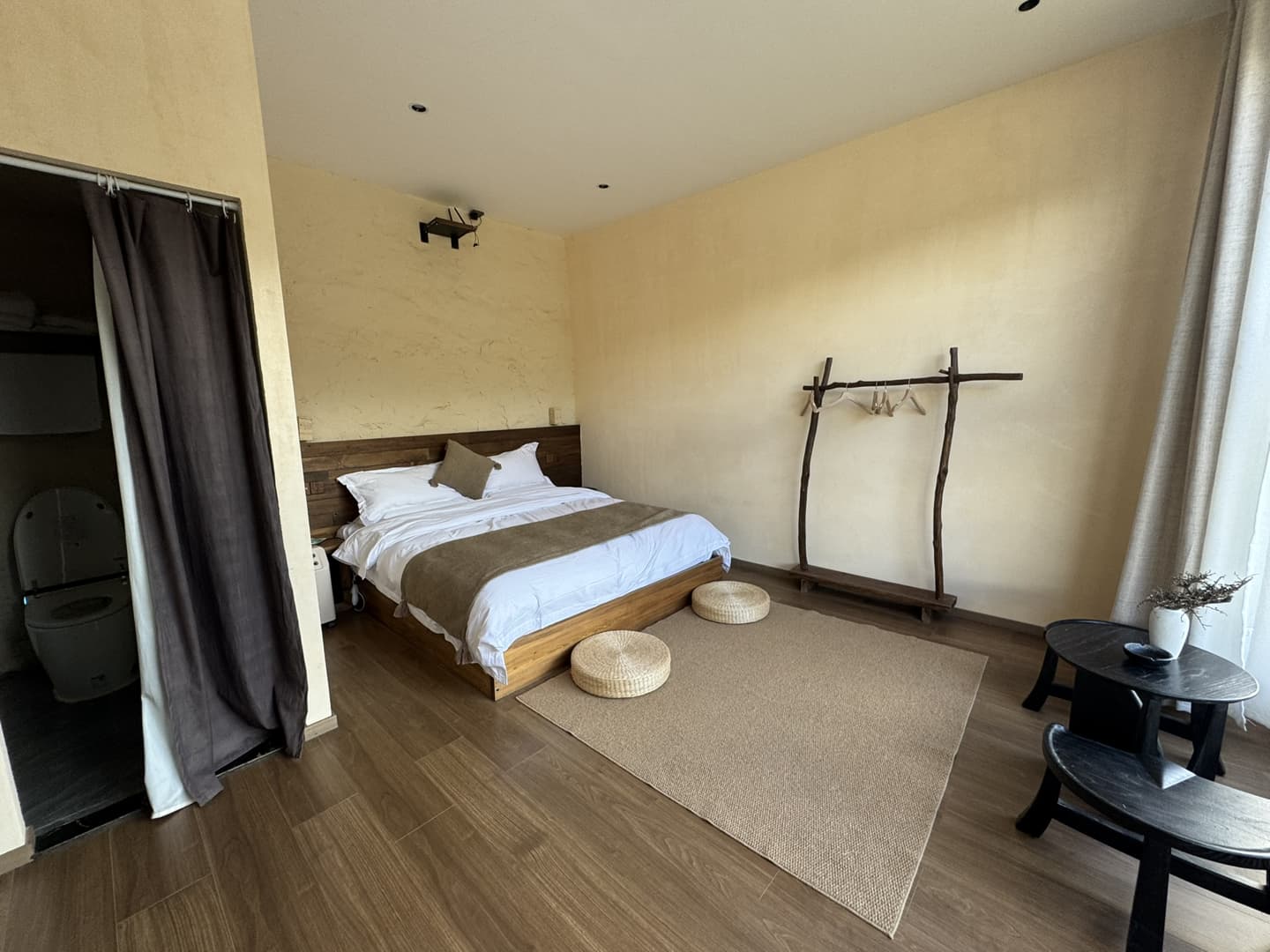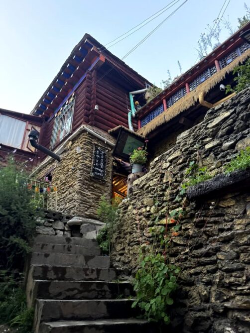 Hébergement : 1 nuit à Zhonglu au 贡谷堡民宿 (Gonggubao Guesthouse) – un charmant boutique hôtel inattendu dans ce village traditionnel ! J’ai dormi dans une chambre spacieuse disposant d’un bain avec vue et d’un toit ouvrant pour observer les étoiles !