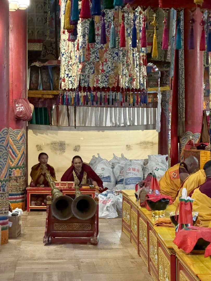 A notre arrivée à Tagong, nous commençons par manger sur le pouce dans un petit restaurant de nouille en face du Monastère de Tagong (Lhagang). Le reste de l’après-midi est consacré à la visite de celui-ci, et nous avons eu beaucoup de change car nous sommes tombés le jour d’un grand festival. Dans ce cadre, nous avons eu l’autorisation unique de filmer et photographier les moines durant leurs prières, pour bénir les gâteaux au beurre de yak et autres snacks qui allaient ensuite être distribués à la foule.