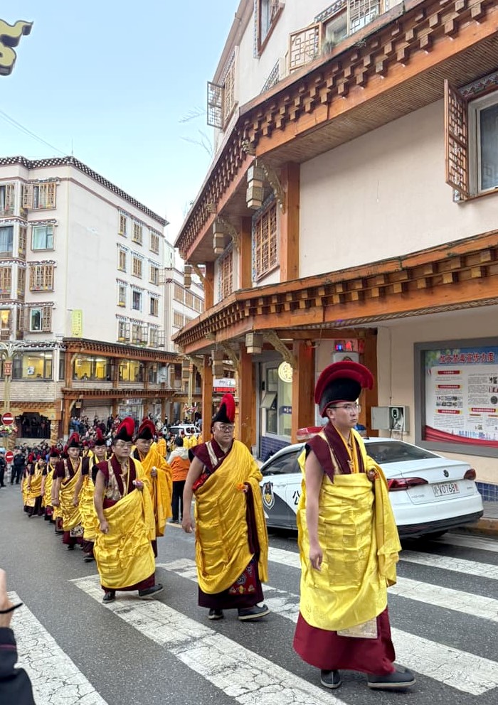 Nous sommes redescendus dans la ville de Dege (3290 mètres d’altitude), un autre centre culture de la préfecture de Garzê, connue comme la porte d’entrée nord du Tibet. Dege a une riche histoire, que nous allions en partie découvrir le lendemain. En attendant, nous avons pu observer en fin de journée un cortège de moines rentrant d’avoir prié en montagne, et nous avons passé la soirée dans un super petit restaurant népalais bien caché (il y a aussi une grande communauté népalaise dans cette région).