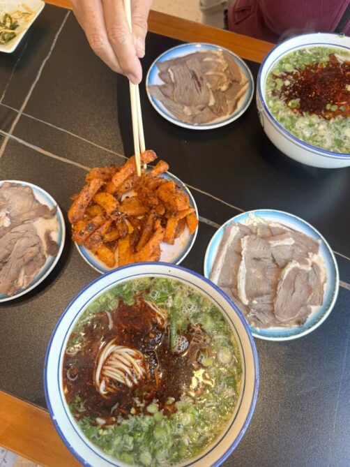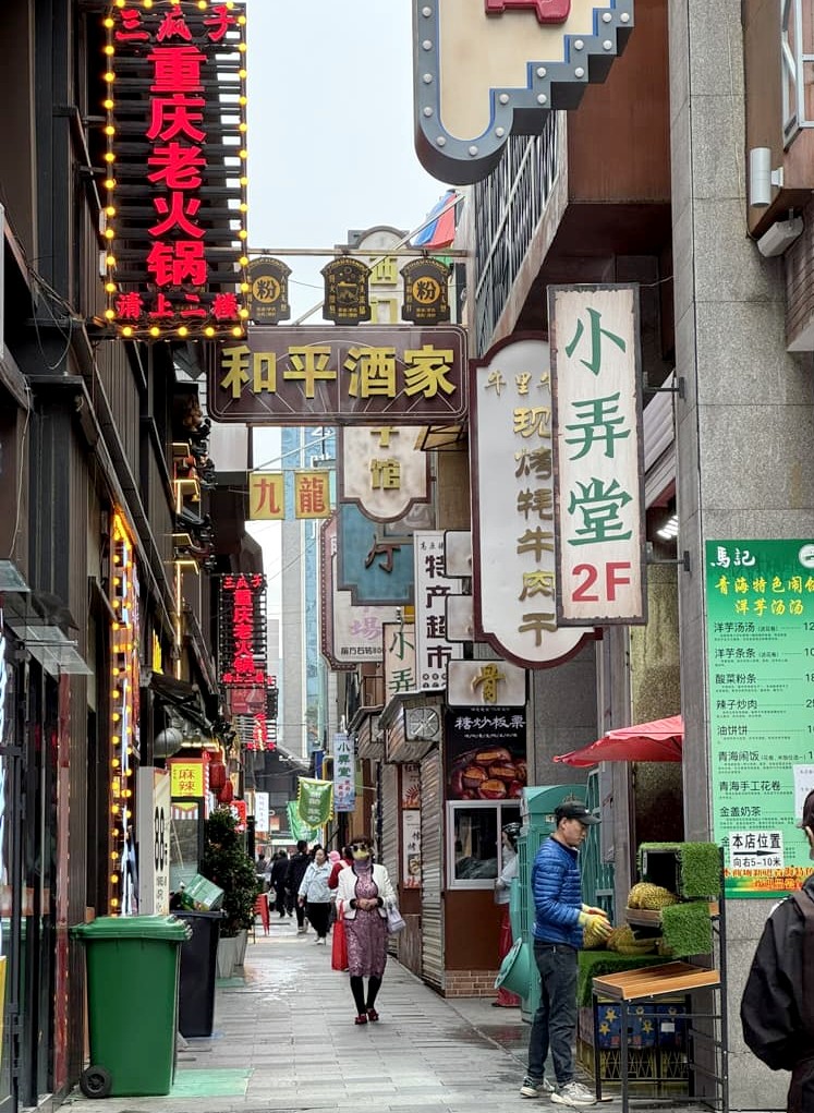Nous voici déjà à la fin de notre itinéraire ! Avant de reprendre l’avion depuis Xining, il me restait une demi-journée pour découvrir la ville par moi-même. La ville de Xining est très étendue, et j’ai donc décidé de me contenter de découvrir la partie de la ville accessible à pied depuis mon hôtel – ce fut une bonne idée, puisque je suis tombée sur une allée commerçante vraiment charmante, la Shuijing Lane, et j’ai trouvé un soufflé au matcha incroyable à l’intérieur d’un petit food court vintage.