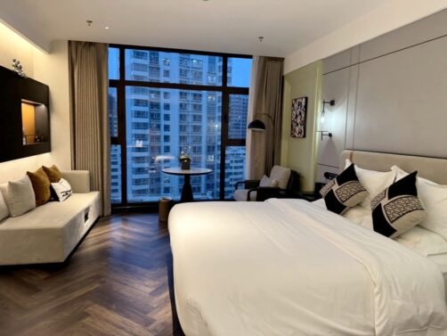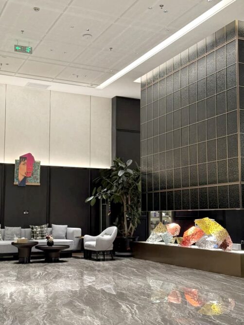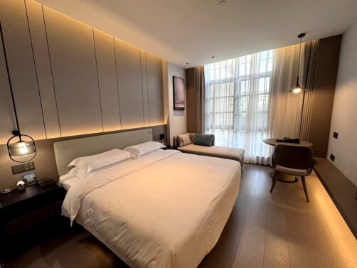 Hébergement : 1 nuit à Chengdu au 鹿喜安伦酒店 (Luxianlun Hotel) – un hôtel moderne et très confortable, un peu éloigné du centre-ville mais proche d’un arrêt de métro (facile à rejoindre depuis l’aéroport).