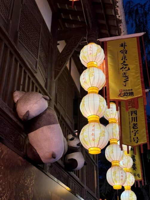 Mon voyage a commencé à Chengdu, où je suis arrivée après une escale à Hong Kong. Je n’ai eu qu’une demi-journée pour visiter la ville, et je me suis donc concentrée sur le quartier de Wu Hou, l’un des quartiers historiques de Chengdu, où nous avons visité son célèbre sanctuaire, avant de manger un excellent hot pot typique de la région du Sichuan (un délice), puis de finir la journée avec une belle balade dans la Jinli Ancient Street, qu’il faut absolument visiter de nuit pour profiter de son atmosphère toute illuminée, même si ça reste fort touristique.