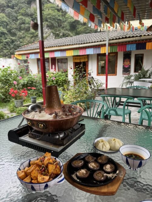 Après la visite, nous avons mangé dans un petit restaurant tibétain à proximité notre premier hot pot au yak du voyage (et le meilleur !).