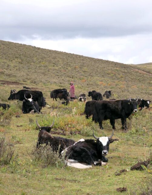 Autre endroit très populaire de la région, le lac alpin surnommé « The Eye of Genyen » (l’oeil de Genyen) à cause de sa forme caractéristique – qui s’observe mieux en drone. Fréquenté par de nombreux yak, ce petit lac est un rêve pour les amateurs de photos !