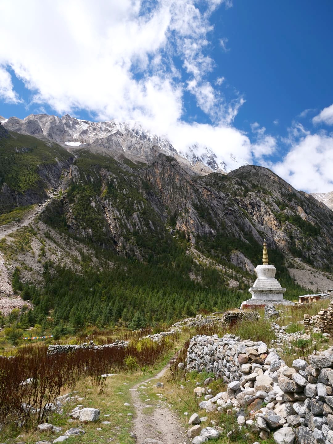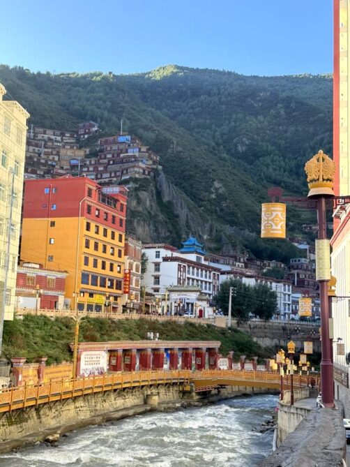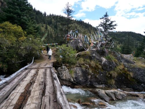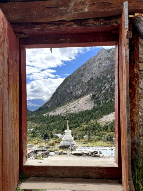 Le Mont Genyen est un sommet sacré qui culmine à plus de 6200 mètres d’altitude : les pèlerins viennent faire le tour du mont, en signe de dévotion. Il est entouré par une région faites de hautes prairies, de glaciers, de rivières aux eaux turquoises (parsemées de sources chaudes !) et de gorges scéniques. C’est une région qui commence seulement à se développer un peu touristiquement, et les quelques hébergements qu’on y trouve sont tous très récents.