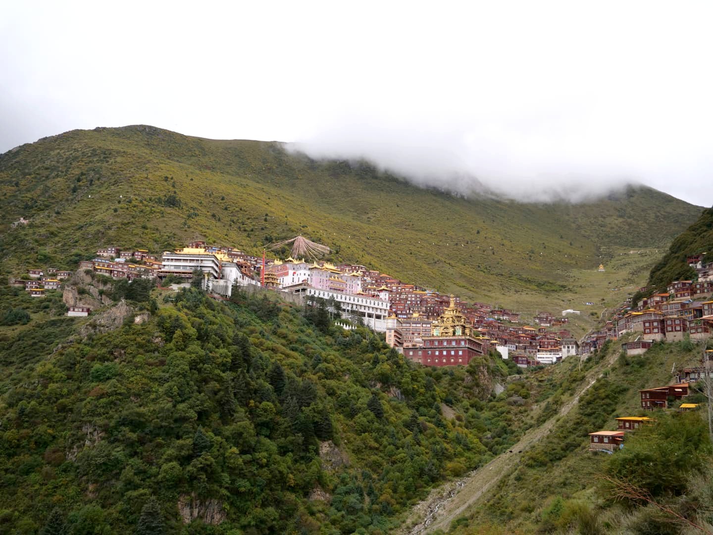 Mais mon activité préférée dans la région du mont Genyen restera sans aucun doute la splendide randonnée de 8 km qui permet de relier le nouveau et le vieux Monastère de Lenggu. Il s’agit de l’un des sites spirituels les plus importants du bouddhisme tibétain. Etabli à l’origine comme centre de la Secte Blanche (Kagyu) du bouddhisme tibétain il y a plus de 800 ans, il a ensuite été associé à l’école Gelugpa. A son apogée, le monastère de Lenggu accueillait pas moins de 100.000 moines !