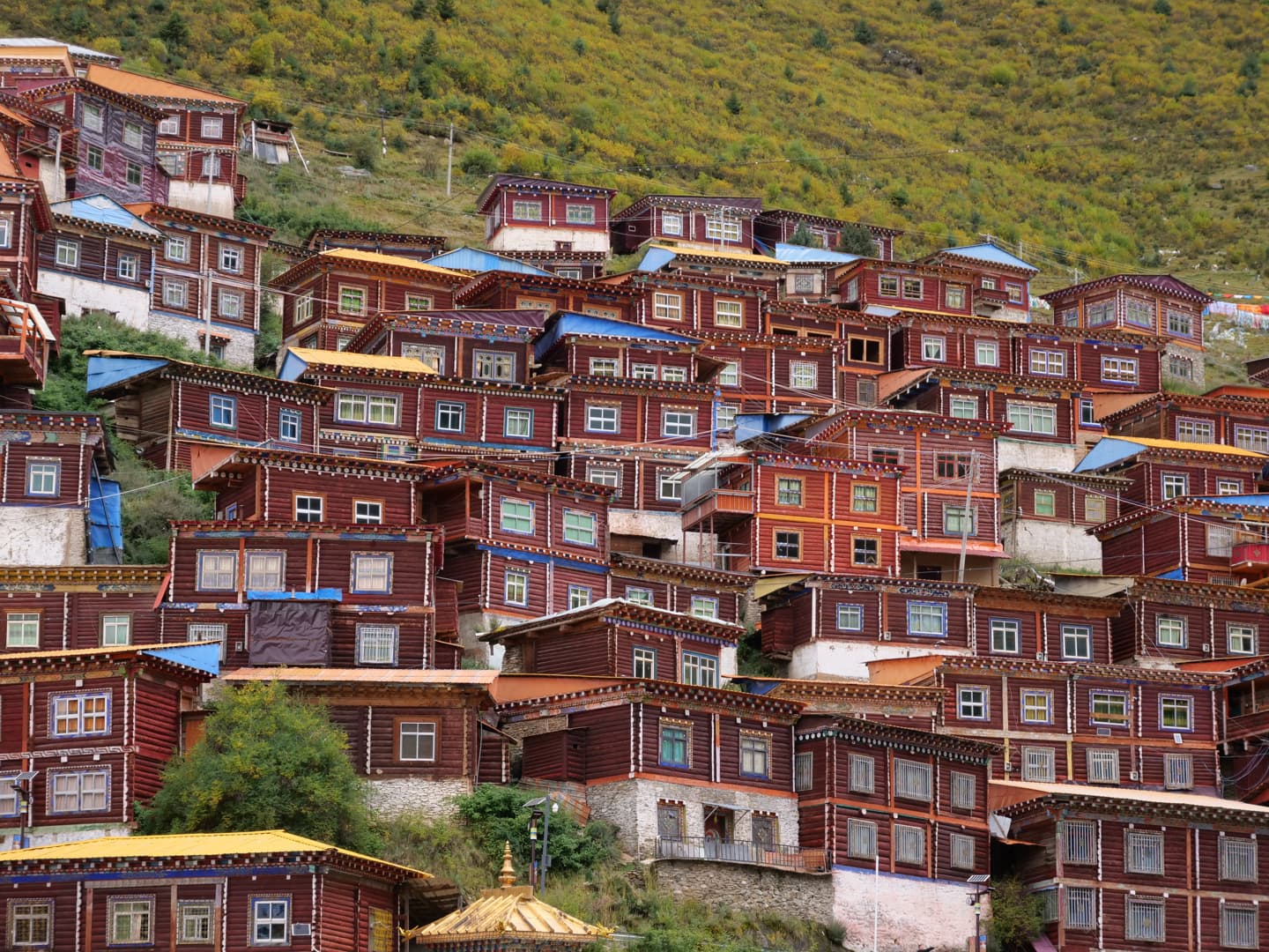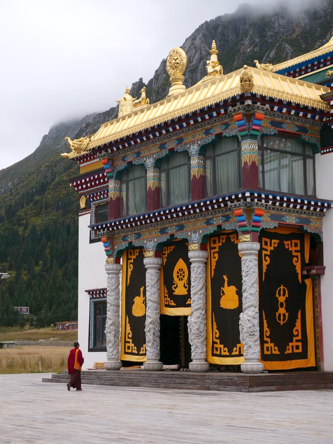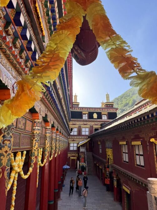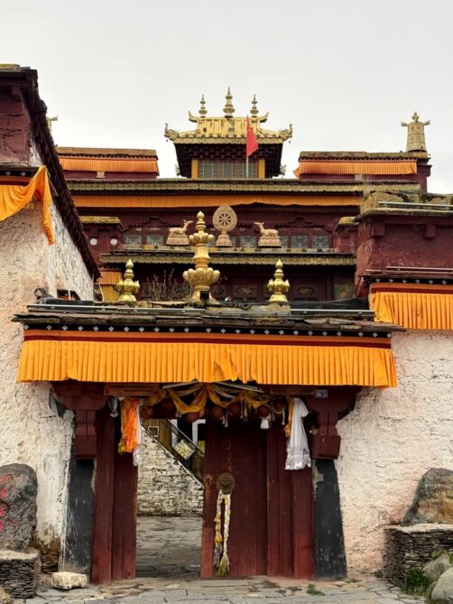 Perché à plus de 3 700 mètres d’altitude sur les hauts plateaux tibétains du Sichuan, Tagong (ou Lhagang) est l’une des portes d’entrée principale du Tibet. Le Monastère de Tagong (ou monastère de Lhagang) est l’un des plus importants de la région et l’un des sites phare de la secte Sakya du bouddhisme tibétain. Ses dorures et ses drapeaux tibétains flottant au vent attirent l’oeil, mais vous trouverez encore plus de richesse à l’intérieur de son hall historique (que je n’ai malheureusement pas pu prendre en photo). Selon la légende, le monastère abrite une statue sacrée de Jowo Sakyamuni, représentant le Bouddha historique, Siddhartha Gautama, réalisée sur modèle, une réplique de la statue originale se trouvant à Lhasa.