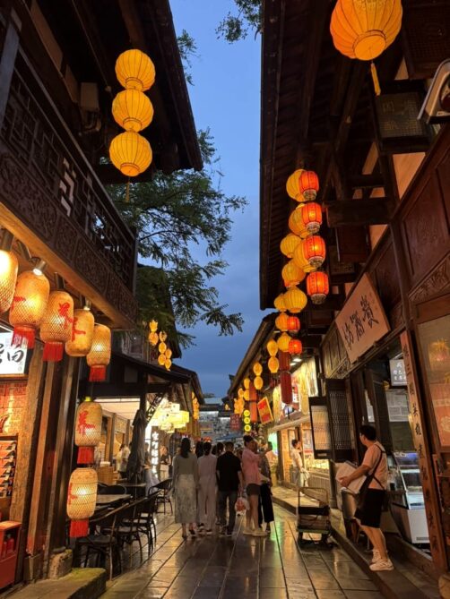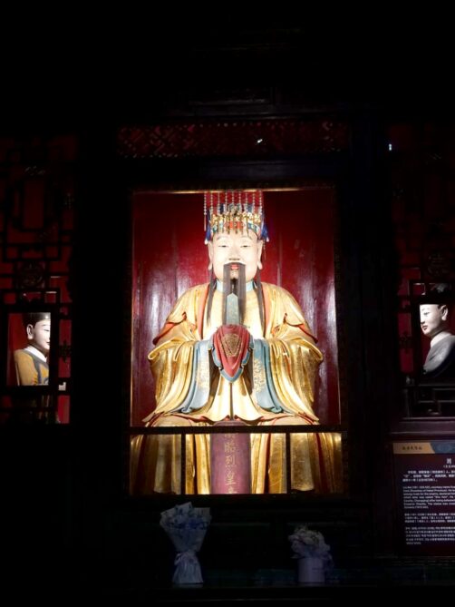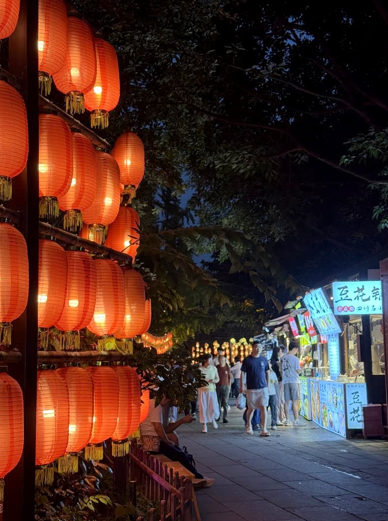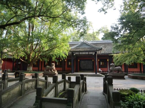 Si comme moi, vous n’avez qu’une journée pour explorer Chengdu, je vous recommande de vous concentrer sur le quartier de Wuhou, l’un des plus agréables et typiques de la ville. On y trouve le temple Wuhou, dédié au célèbre stratège Zhuge Liang, ainsi que l’ancienne rue Jinli, bordée de maisons traditionnelles, de boutiques d’artisanat et de petits stands où vous pourrez goûter aux spécialités locales (à visiter de nuit pour profiter d’une ambiance féerique). S’il vous reste du temps, prolongez la balade avec un tour au People’s Park et passer par le scénique pont Anshun, magnifiquement illuminé de nuit.