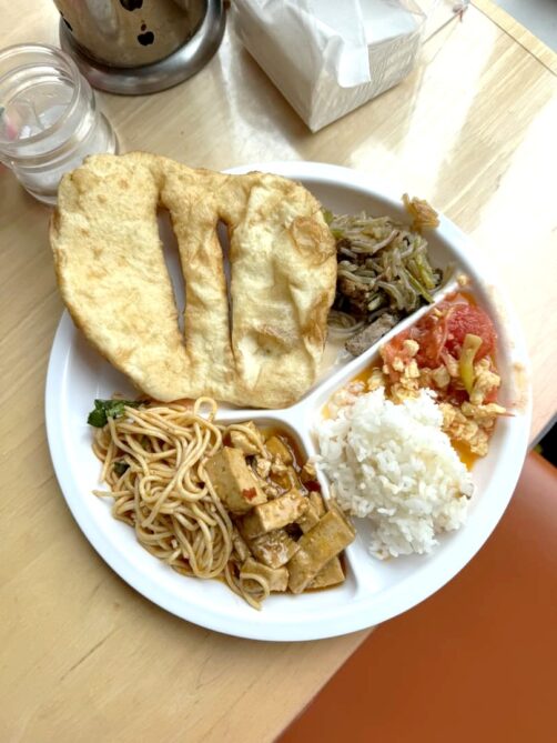 L’une des particularités du Monastère de Zhuqing, c’est que tout le monde peut avoir accès à la cantine du monastère. C’est l’occasion parfaite pour goûter à la cuisine végétarienne bouddhiste, dans un cadre authentique, entouré par les moines. C’est une cuisine assez simple, mais ce fut l’un des repas les plus mémorables de ce voyage.