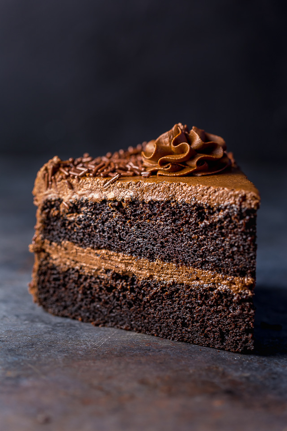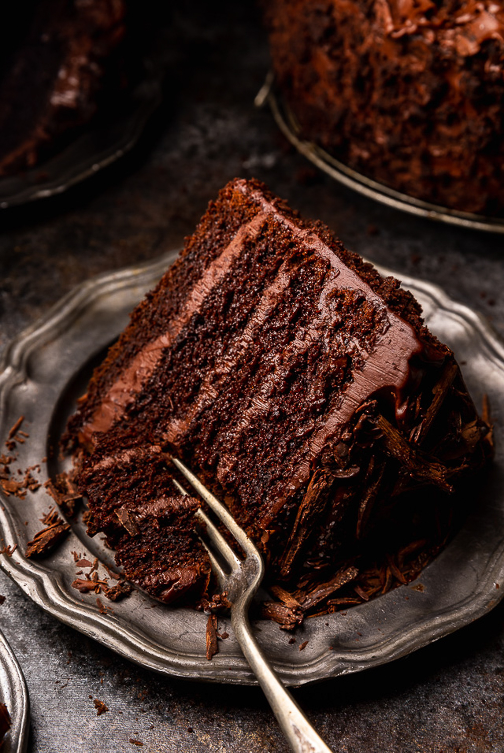 Few things beat a classic slice of chocolate cake slathered in chocolate frosting! This recipe is always a crowd-pleaser and will never go out of style!