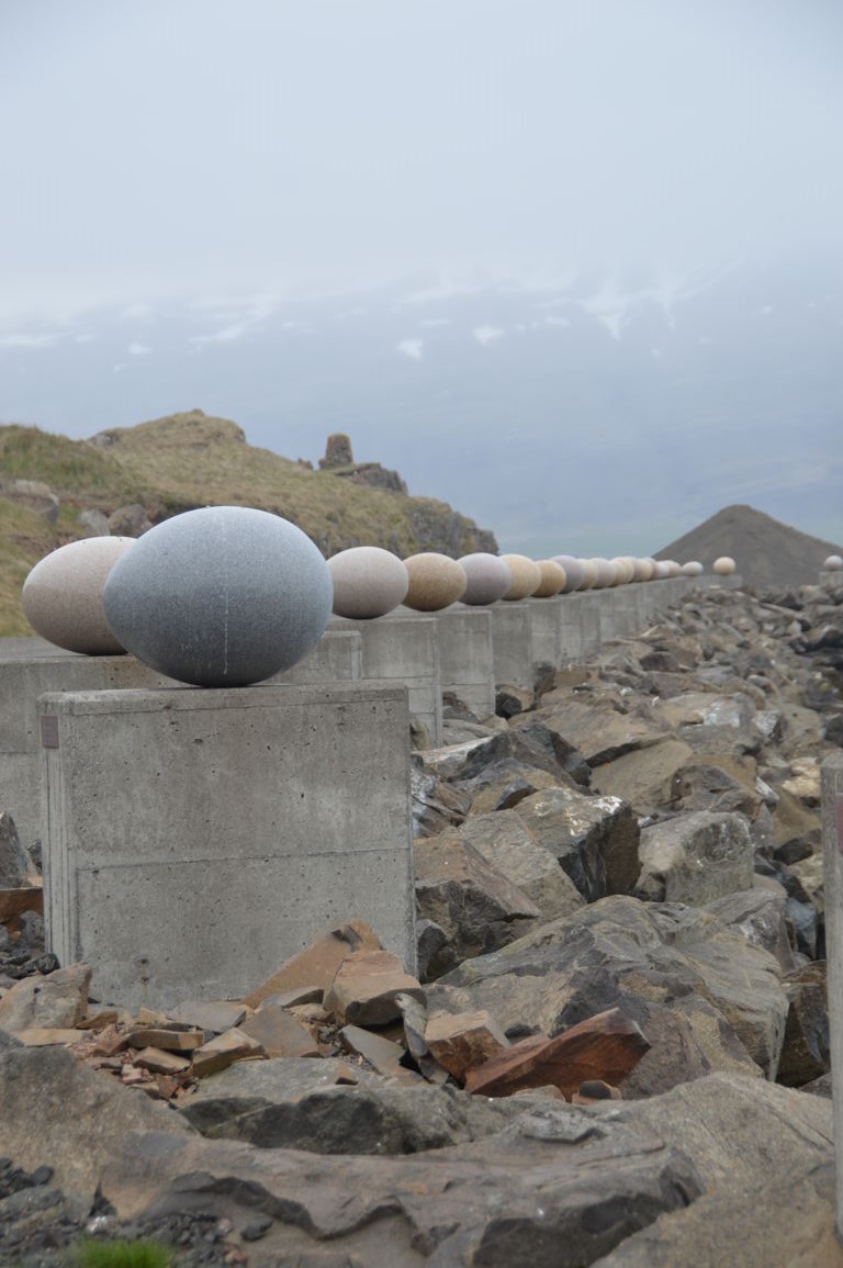 Un peu plus loin se trouvent « The Eggs of Merry Bay », une sculpture unique créée par l’islandais Sigurdur Gudmundsson, composée de 34 répliques d’oeufs de 34 espèces d’oiseaux vivant dans la région.