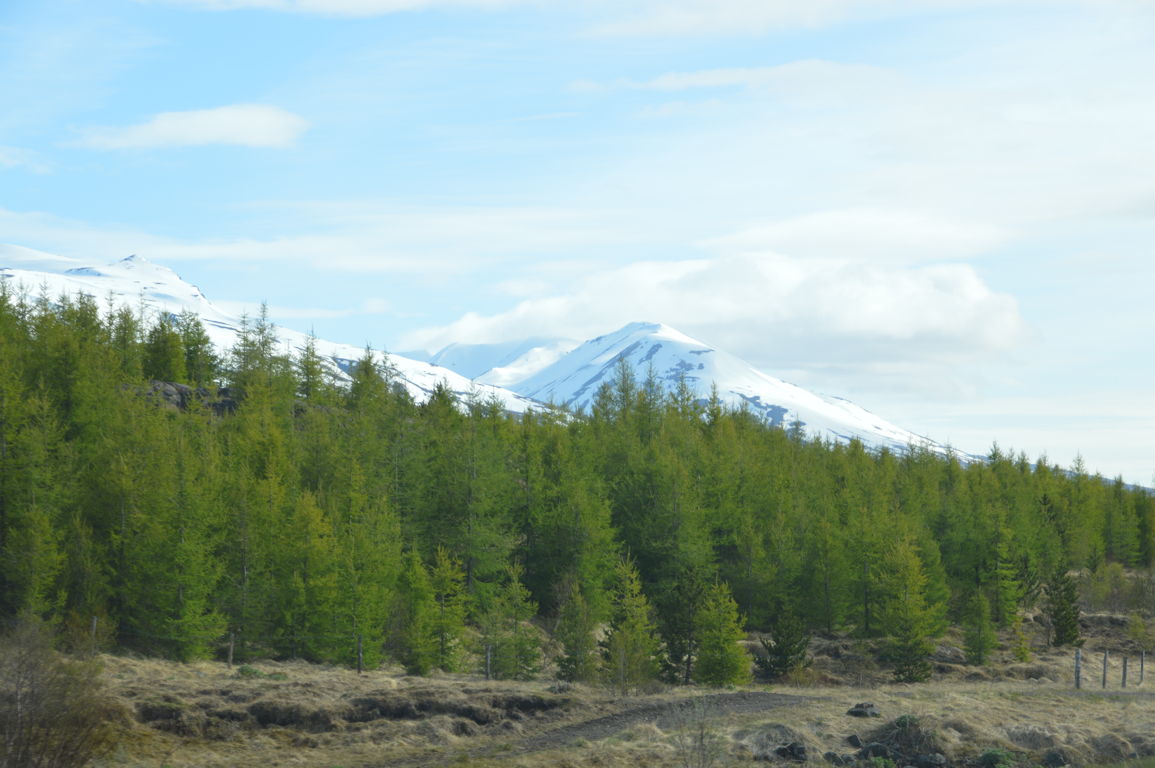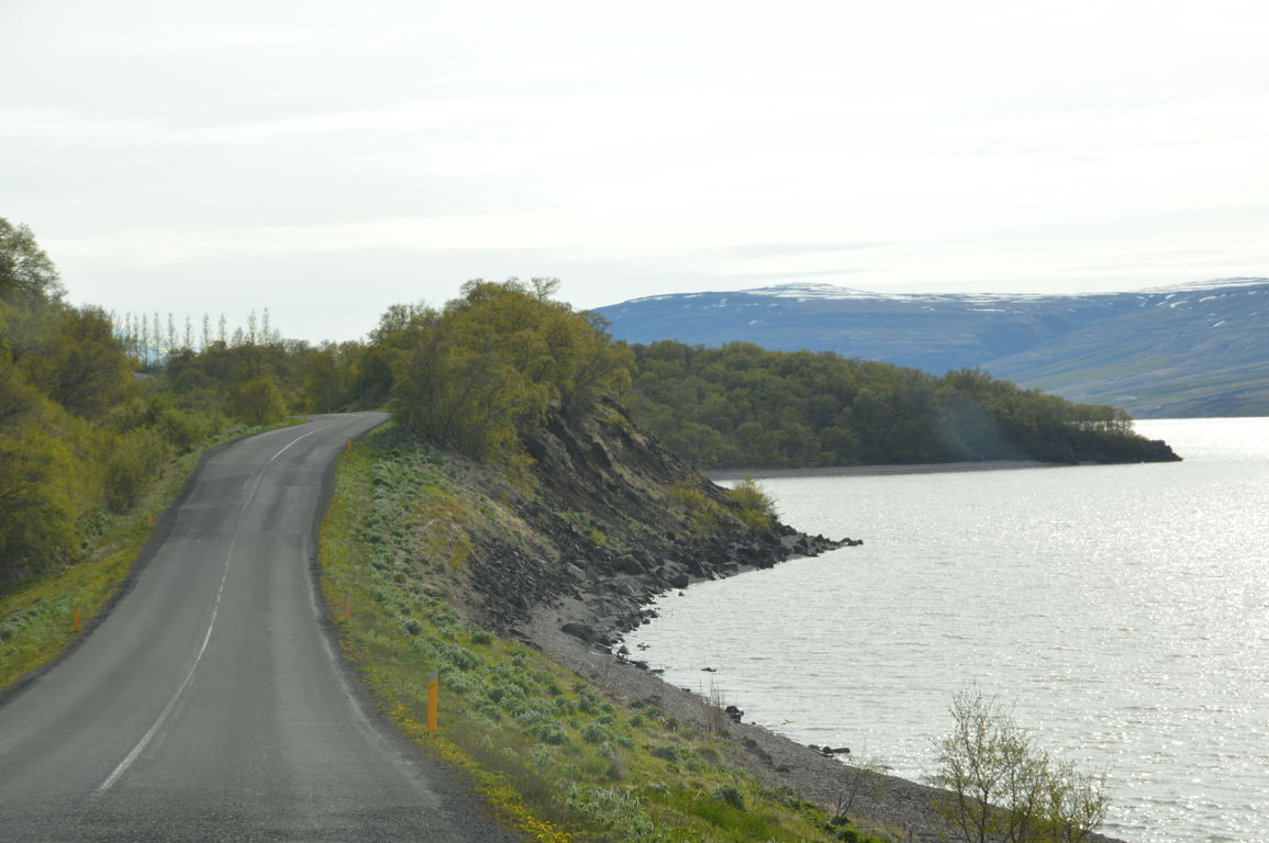 Nous arrivons enfin à notre destination du jour : le Lac Lögurinn ! Changement de décor après la traversée du « désert » islandais… le paysage est très vert, il y a même des sapins… Sur les côtes du lac se trouve d’ailleurs le plus grand reste de forêt naturelle d’Islande !