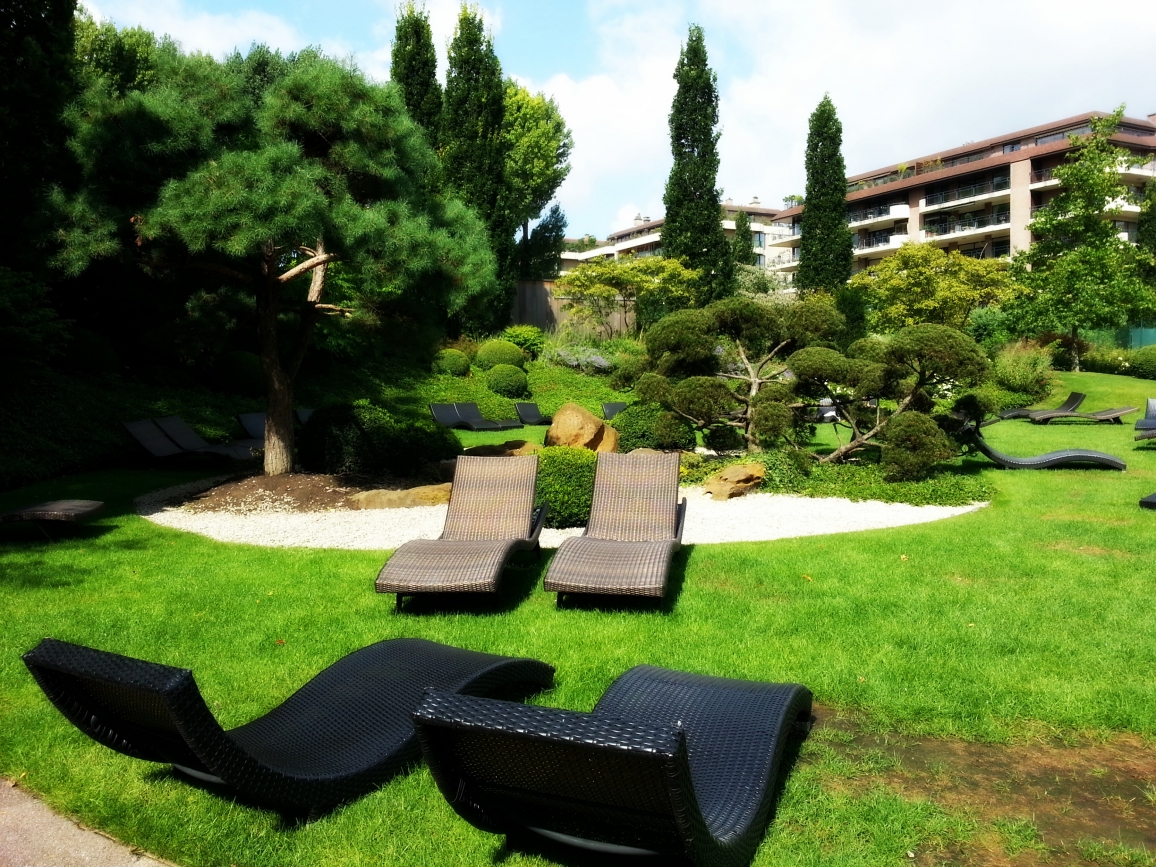 Il y a également un espace repos, où des couvertures et des magazines vous sont proposés, et une grande terrasse extérieure avec vue sur les cours de tennis. Ce qui est vraiment bien à l’Aspria, c’est que toutes les structures sont très propres, tout est très bien entretenu.