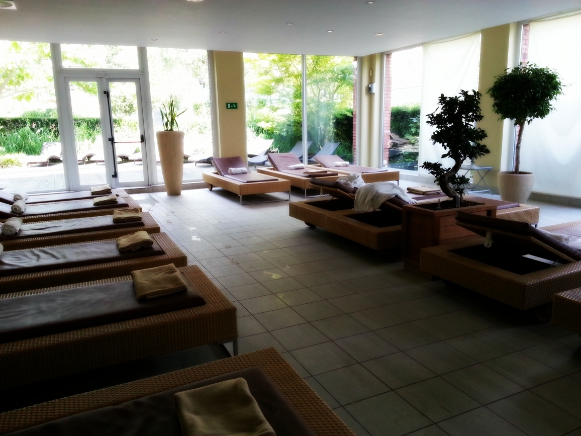 La partie bien-être du centre, dans laquelle nous sommes donc restés, est assez grande mais il n’y a aucune piscine en extérieur, ce qui est un peu dommage quand il fait beau (mais ça arrive si rarement à Bruxelles que je peux comprendre ce choix…).