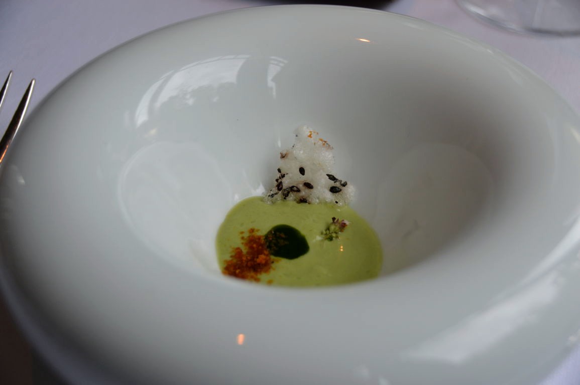 Une autre mise en bouche arrive ensuite, à base de yaourt fumé aux herbes et tapioca (le tapioca et moi, c’est une grande histoire d’amour depuis notre séjour au Vietnam, j’ai donc bien sur adoré).