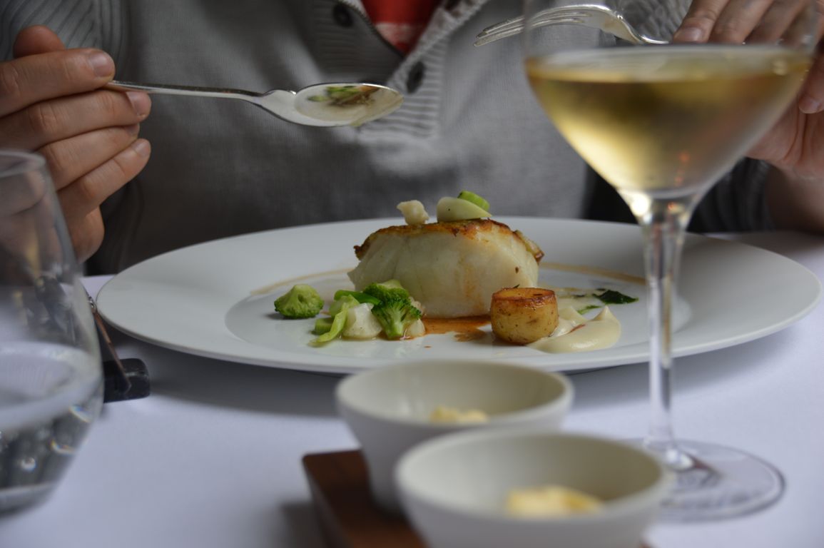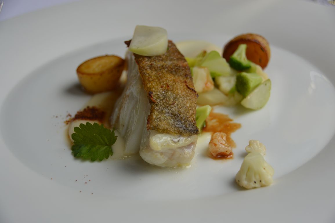Le plat principal était un peu plus classique, il s’agissait de cabillaud, accompagné de chou-fleur, brocoli et pommes de terre de Noirmoutier. Cuisson parfaite, légumes savoureux, mais il manquait peut-être un peu d’originalité.