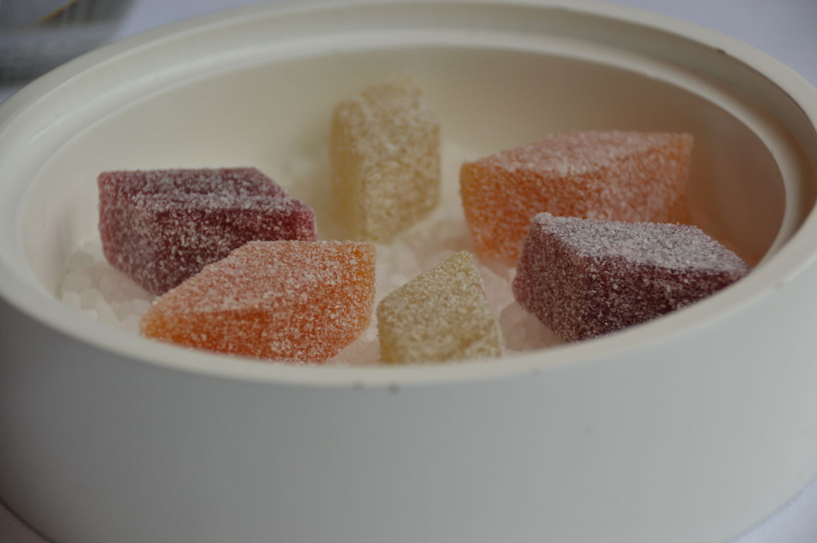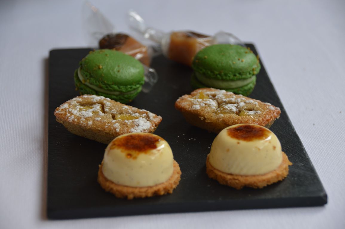 On nous a également apporté directement les mignardises, bien que nous ne comptions pas prendre de café. Pâtes de fruit, macarons, caramels, mini crèmes brûlées… Nous avons été bien servis !