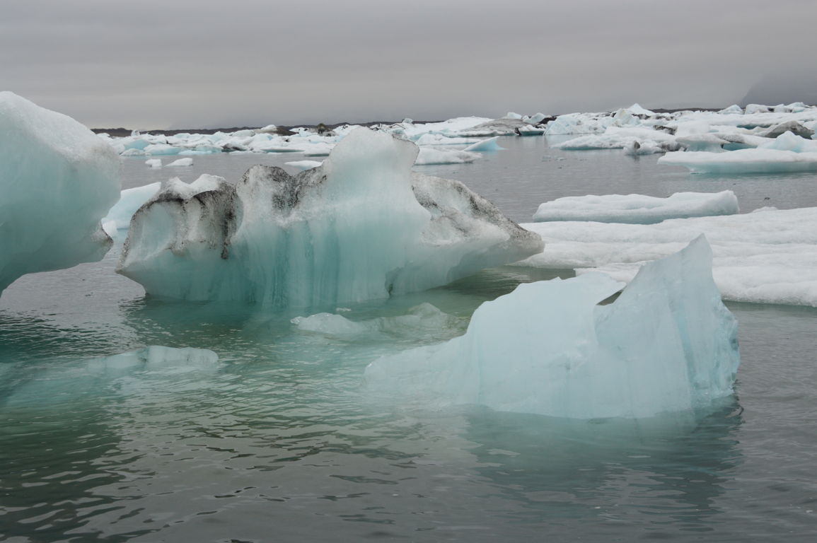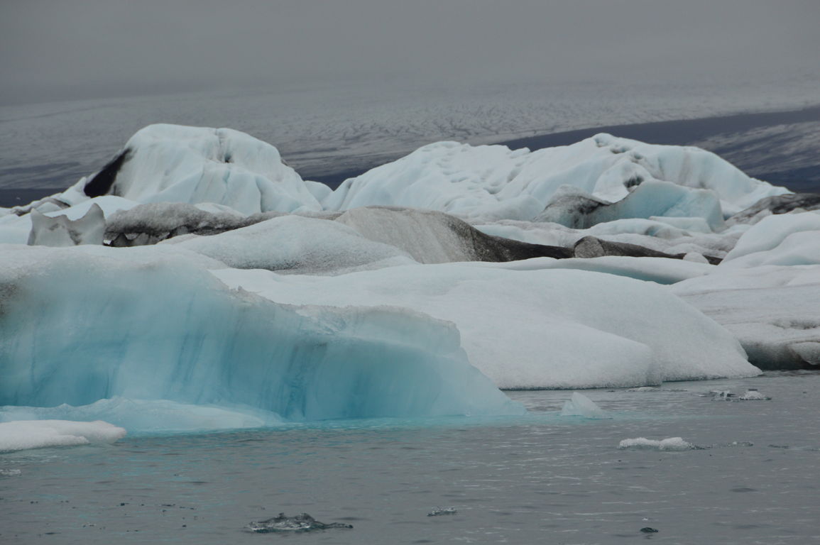 Chaque iceberg a une teinte bien particulière, certains sont très blancs, d’autres plutôt bleu ou turquoise, d’autres encore sont légèrement noir à cause des cendres volcaniques (le glacier Vatnajökull abrite en effet plusieurs volcans).